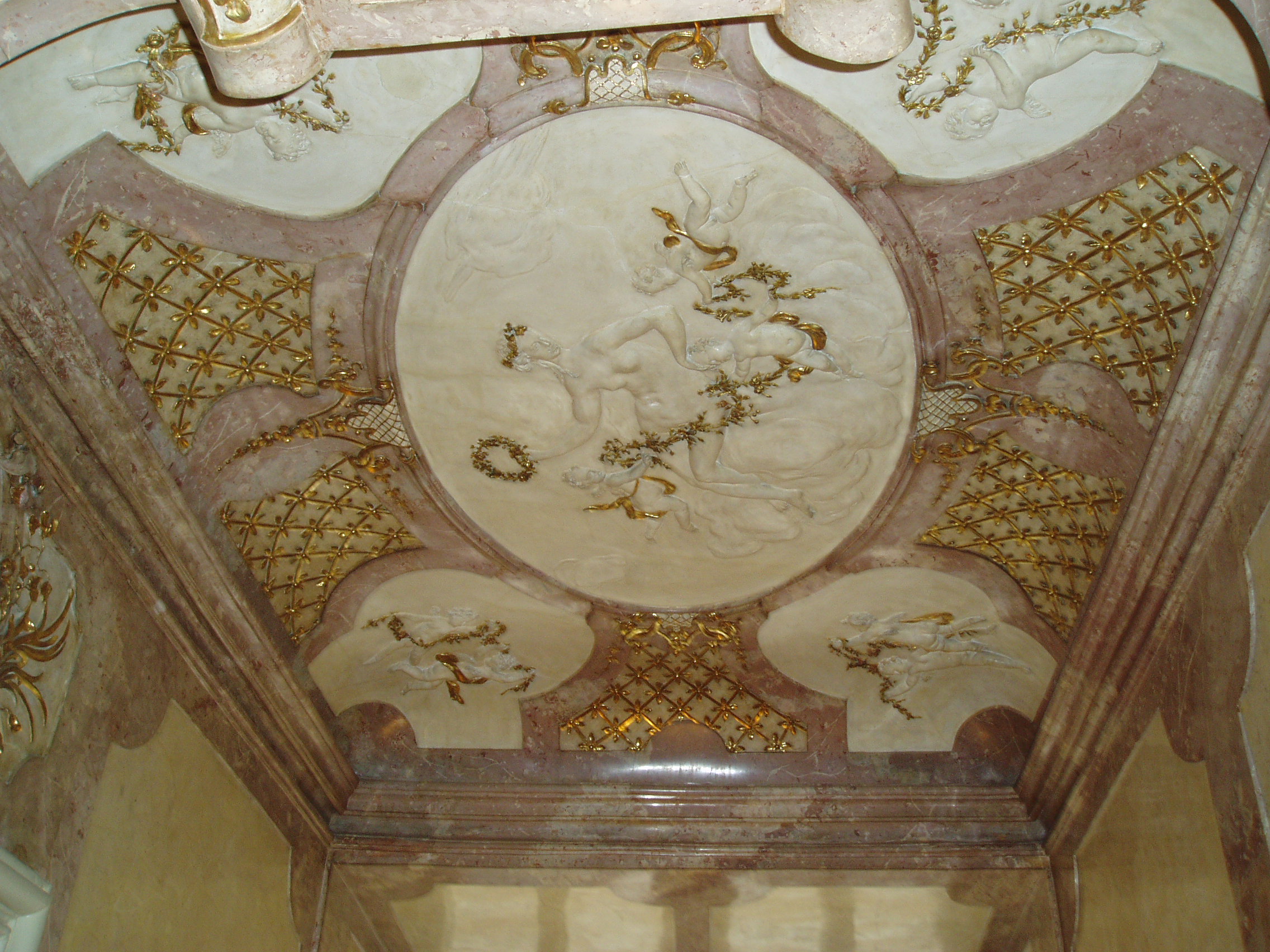 Nyilvános 1622 | 3713 | Domgasse 5. Szobabelső Mozart lakásában | Kutatók szerint az egykori Mozart-lakás e legszebben dekorált kis helyisége lehetett a zeneszerző hálószobája. Bár bútorai, használati tárgyai közül semmi nem maradt fenn, de ő is ugyanezt a díszes mennyezetet látta. A lakásban, illetve a fölötte lévő két szinten berendezett, s a XXI. század minden technikai vívmányával felszerelt emlékmúzeumban a zeneszerző több eredeti kézirata is látható. |