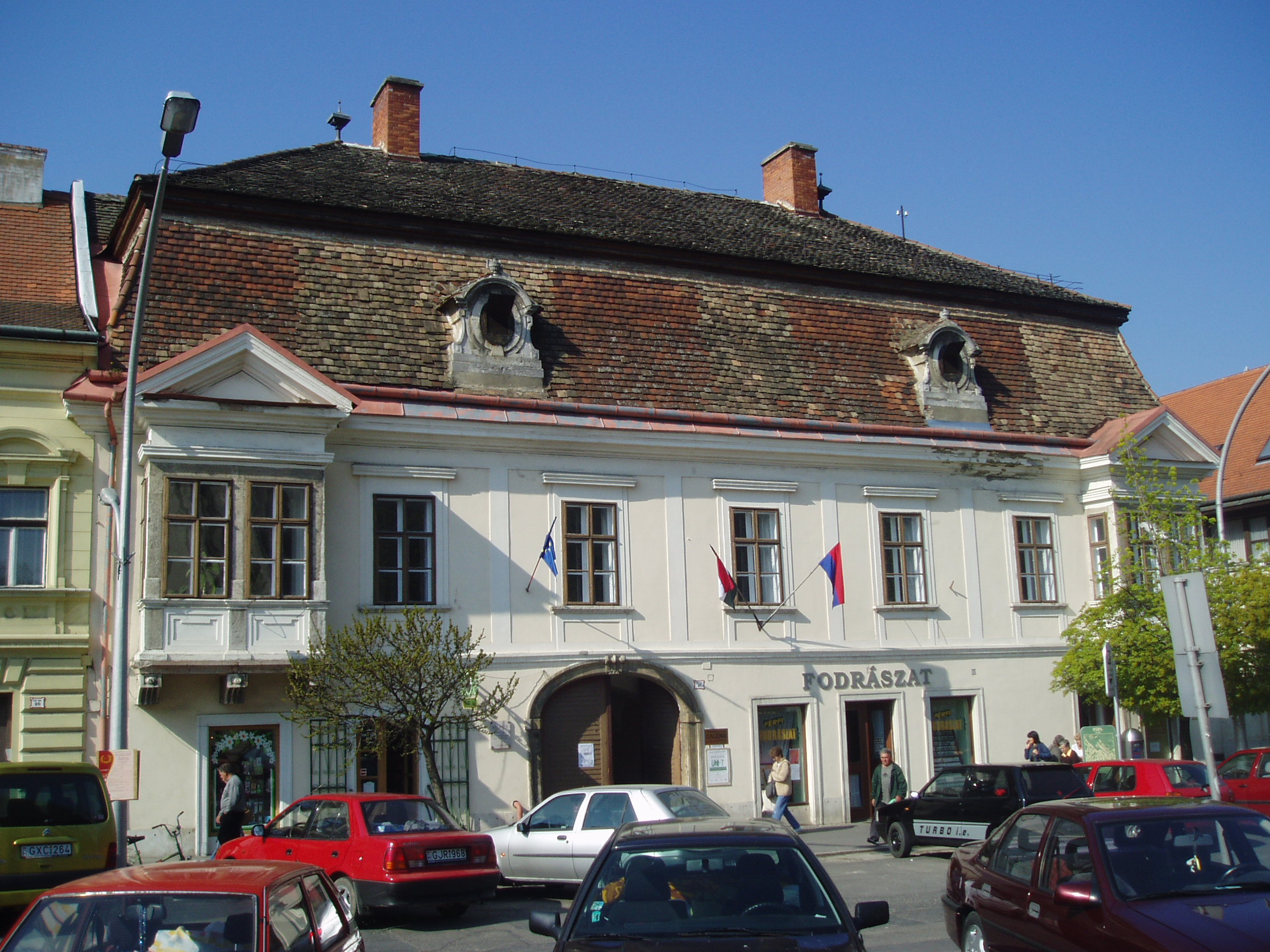 Nyilvános 1174 | 2980 | Pápa, Fő tér 21. Zichy-ház | A Zichy-ház a Fő tér és a Korvin utca sarkán áll. Elnevezése máig nem tisztázott. 1760 körül épült, s a helyi késő barokk stílus egyik legértékesebb alkotása. Egy ideig a Pápai Kaszinó otthona volt, majd gróf Esterházy Tamás uradalmi háza lett. Előkelő tömegű, de egyszerű architektikájú épület, amelyet zárterkélyek élénkítenek. Hatalmas manzardteteje szinte "megüli" a házat. Kőkeretezésű, kosáríves, záróköves kapuja hangulatos, festői belső udvarba vezet. A több szakaszos kapualjat lapos boltozat fedi. A lépcsőházba kosáríves, kőkeretes ajtó nyílik, díszes, kovácsoltvas rácsa a kovácsművesség remeke. Az épület a legkorábbi, szakszerű műemléki helyreállítások közé tartozik a városban. A fénykép 2007 áprilisában készült. Felh. irod.: Németh Adél - Szabó Lajos: Pápa. Bp. Panoráma, 1989 |