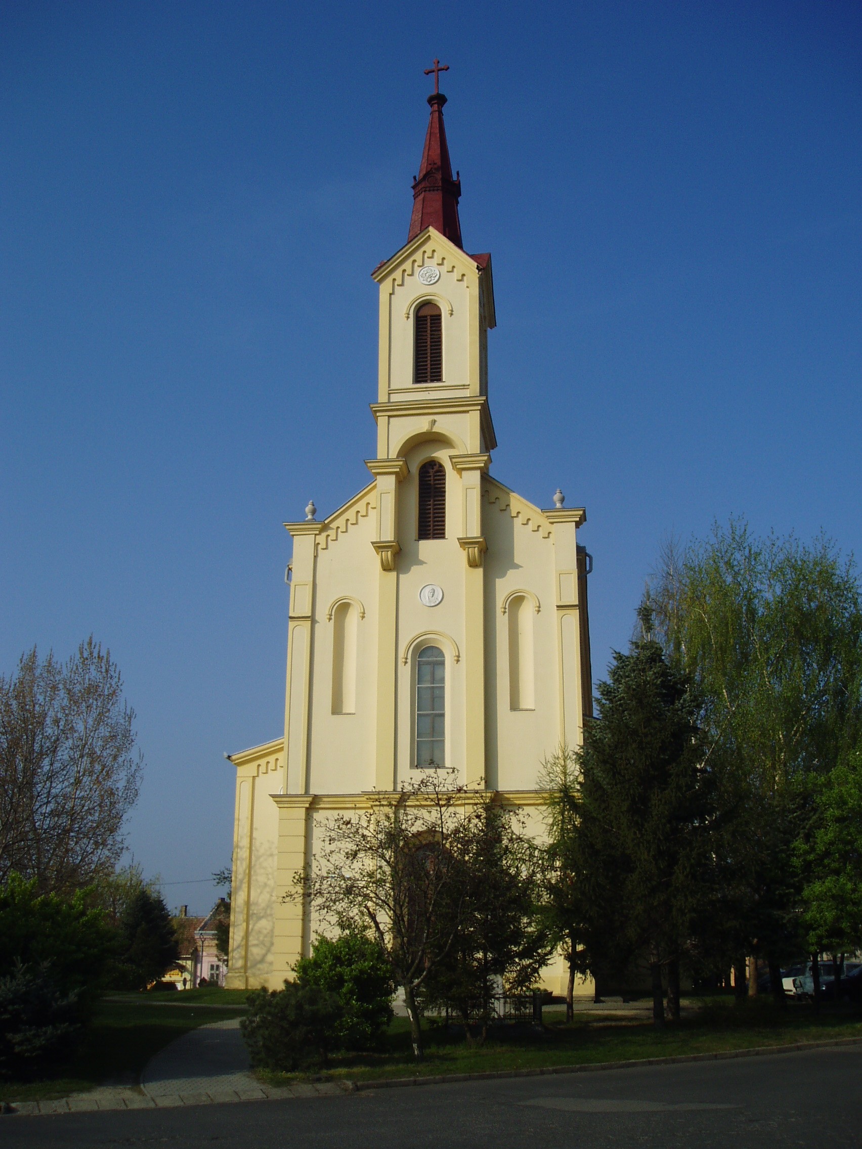 Nyilvános 1333 | 3274 | Pápa, Anna tér: Anna kápolna | Az Anna tér az egykori Alsóváros településközpontja. A tér dombján álló Szent Anna kápolna 1875-ben épült. Helyén az 1700-as évek derekán a reformátusok temetői fatemploma állt, ugyanis a téren valaha temető volt, amelyet 1830 körül számoltak fel. A hagyomány szerint e régi temetőben nyugszanak az 1575-ben Pápán elhunyt Huszár Gál, a magyar reformáció nagy alakjának hamvai (lásd még: Pápa, Zimmermann u. 4.). Az Anna-kápolna egyhajós, neoromán stílusú templom, mely Ranolder János megyéspüspök adományából épült a régi templom helyére. Előtte kőkeresztet állítottak az 1712. évi kolerajárvány elmúlásának emlékére. A fénykép 2007 áprilisában készült. Felh. irod.: Németh Adél - Szabó Lajos: Pápa. Bp. Panoráma, 1989 |