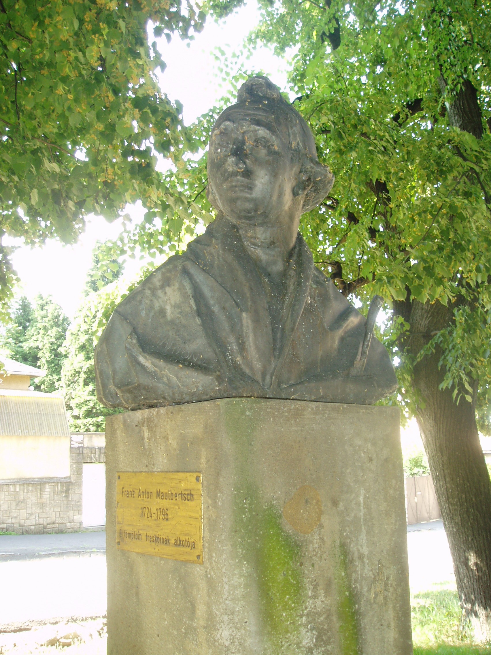 Nyilvános 1104 | 1661 | Sümeg, Bíró Márton utca 1. Plébániatemplom | Sümeg egyik legszebb épülete az Urunk mennybemenetele tiszteletére emelt római katolikus templom. Ezen a helyen már a XIV. században templom állott, melyet Padányi Bíró Márton lebontatott, és 1756-1759 között építtette fel a mai barokk plébániatemplomot. Építészetileg a barokk stílus általános, megszokott mintáit mutatja: nyugati főhomlokzatát hatalmas falpillérek díszítik, fölötte háromrészes főpárkány húzódik, a középrészben az építtető püspök címerével. Az épület igazi értékét Franz Anton Maulbertsch falfestményei jelentik, amelyek az egész templombelsőt beborítják. Nem véletlenül nevezik a templomot a rokokó Sixtus-kápolnájának. A templom előtti kis parkban állították fel az építtető püspök és a festőművész mellszobrait, mindkettő Marton László alkotása. A képen Franz Anton Maulbertsch (1724-1796) szobra látható. A fénykép 2007 júniusában készült. Felh. irod.: Koppány Tibor - Kozák Károly: Sümeg útikalauz. Veszprém, Idegenforgalmi Hivatal, 1965 Látnivalók Veszprém megyében. Miskolc, Well-PRess, 2004 Sümegi kalauz. Sümeg, Sümegi Fórum Alapítvány, 1993 |