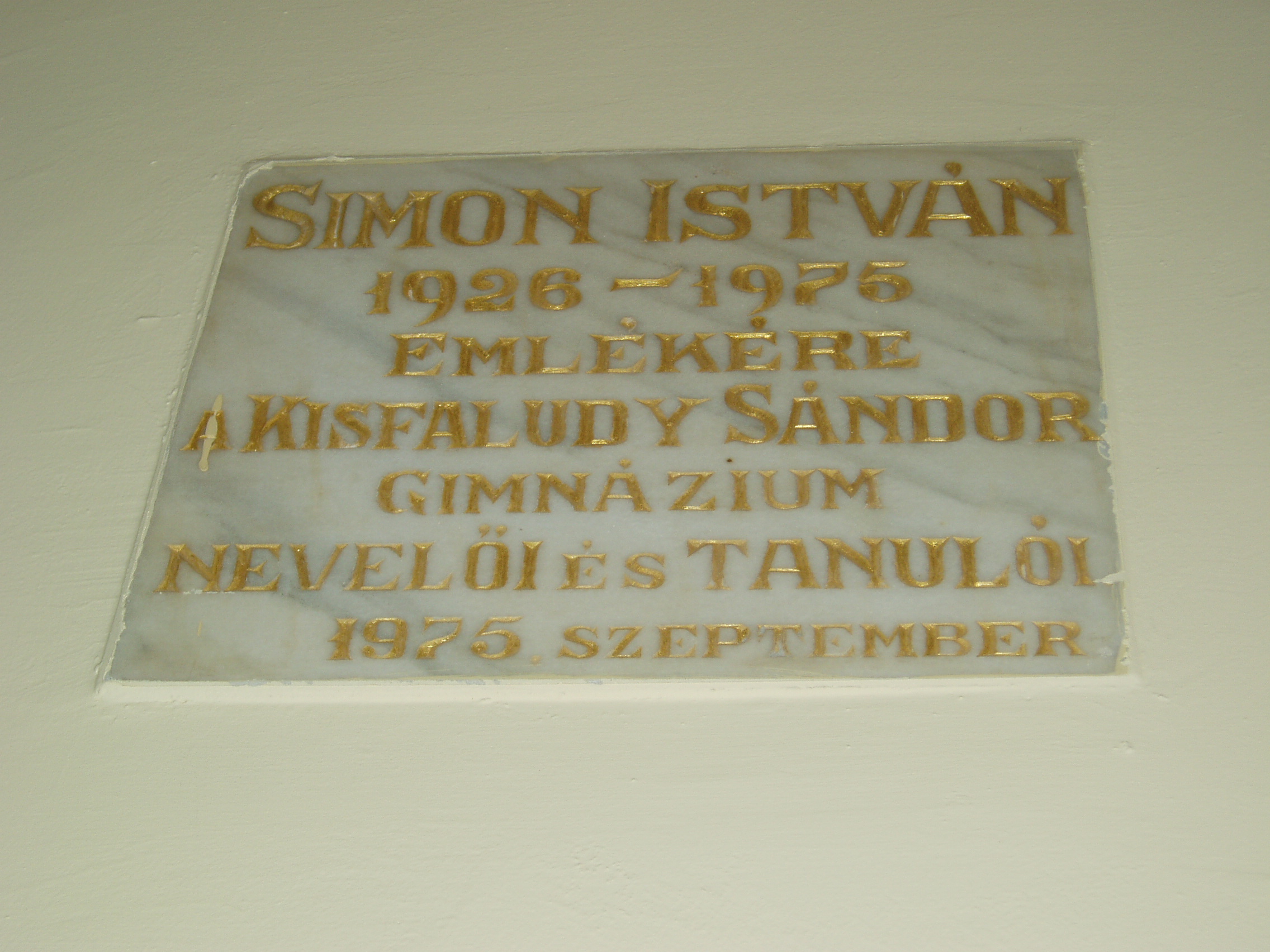 Nyilvános 1100 | 1662 | Sümeg, Mártírok útja 1. Kisfaludy Sándor Gimnázium | A Kossuth Lajos utca és a Mártírok útja sarkán magasodó többszintes épület a sümegi oktatás legimpozánsabb hajléka. Az iskola előcsarnokában több emléktáblát, udvarán pedig Kisfaludy Sándor szobrát helyezték el. A képen a Simon István költő emlékére állított márványtábla látható. A közeli Bazsi községben (lásd: Bazsi, Fő út 149.) született költő ebben az iskolában végezte középiskolai tanulmányait. Ebben az időben jelent meg első verseskötete Egyre magasabban címmel (1944). A fénykép 2007 júniusában készült. Felh. irod.: Koppány Tibor - Kozák Károly: Sümeg útikalauz. Veszprém, Idegenforgalmi Hivatal, 1965 Látnivalók Veszprém megyében. Miskolc, Well-PRess, 2004 Sümegi kalauz. Sümeg, Sümegi Fórum alapítvány, 1993 Veszprém megyei életrajzi lexikon. Veszprém, Veszprém Megyei Önkormányzat Közgyűlése, 1998 |