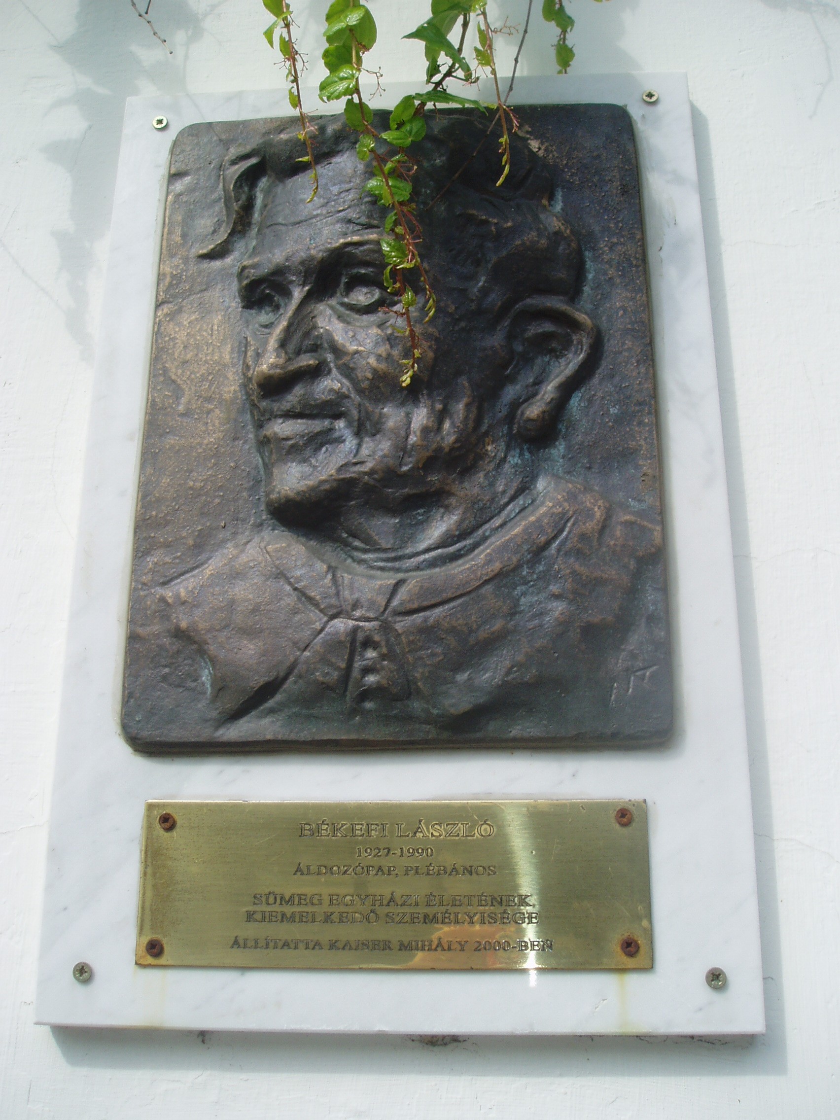 Nyilvános 1154 | 2024 | Sümeg, Panteonfal. Békefi László emléktáblája | A Kisfaludy téren, Kisfaludy Sándor szülőháza előtt alakították ki Sümeg Panteonfalát. A képen Békefi László emléktáblája látható. Békefi László (Celldömölk, 1927. júl. 30. – Sümeg, 1990. márc. 13.) prépost. 1952-ben, Veszprémben szentelték pappá. Két évig Buzsákon, egy esztendeig Búcsúszentlászlón, 1955–1957 között Sümegen káplán. Veszprémben püspöki helytartó, püspöki titkár, majd templomigazgató. 1961-től Sümegen plébános, 1963 után a kerület vezető esperese, 1973-tól prépost. A város mindkét templomát felújíttatta, a plébániatemplom központi fűtést kapott. A Máltai Lovagrend segítségével munkálkodott a várbeli kápolna felújításán. Tagja volt a városi Hazafias Népfrontbizottságnak, a Városvédő- és Szépítő Egyesületnek. 1994-ben – posztumusz – Sümeg város díszpolgára címet kapta. A fénykép 2007 júniusában készült. Felh. irod.: Koppány Tibor - Kozák Károly: Sümeg útikalauz. Veszprém, Idegenforgalmi Hivatal, 1965 Látnivalók Veszprém megyében. Miskolc, Well-PRess, 2004 Veszprém megyei életrajzi lexikon. Veszprém, Veszprém Megyei Önkormányzat Közgyűlése, 1998 |