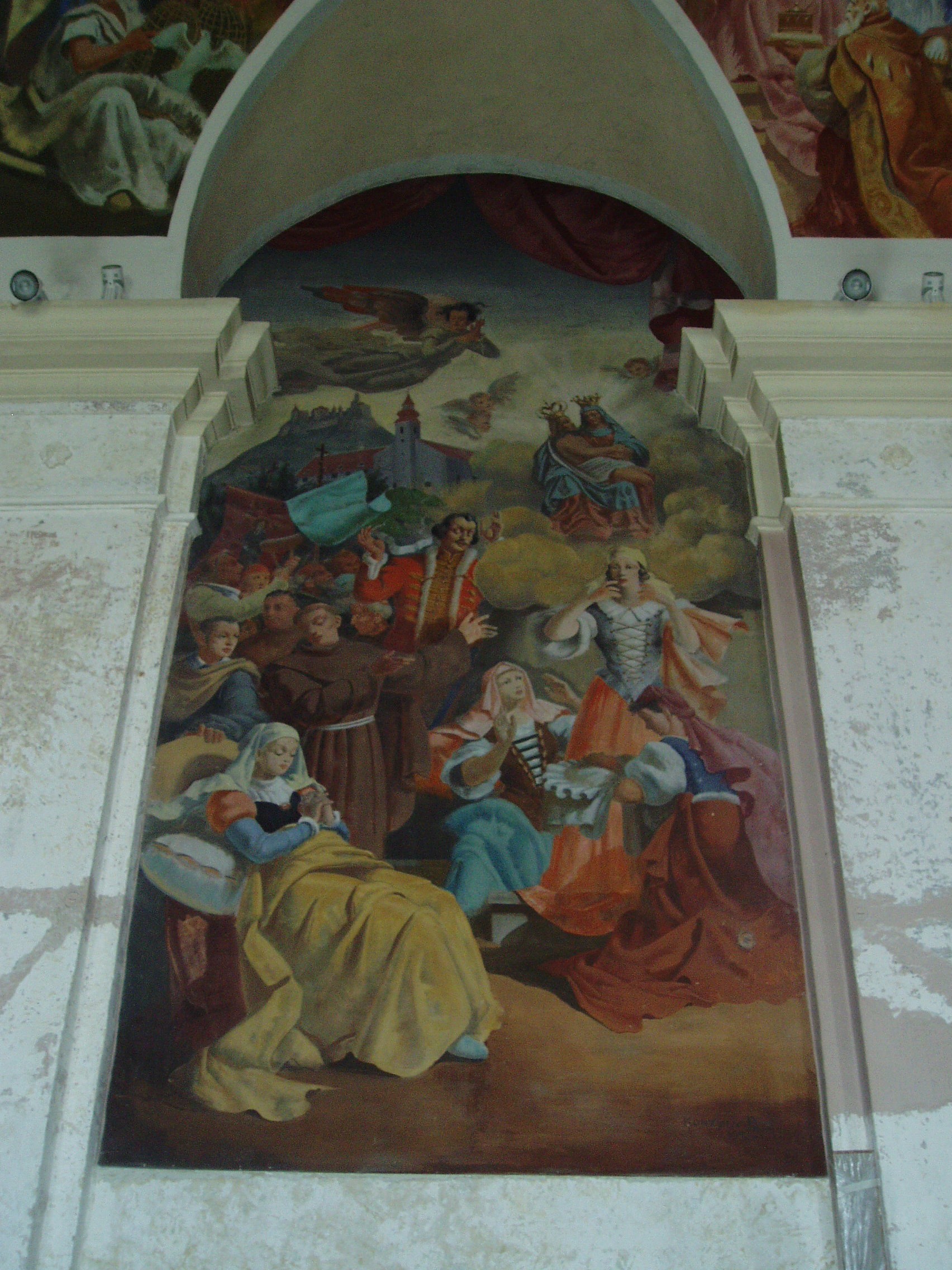 Nyilvános 1144 | 2218 | Sümeg, Szent István tér 7. Ferences templom | A ferences kolostor és templom épülettömbje a vár után (lásd: Sümeg, Vár) Sümeg legrégibb műemléke. A ferences atyákat a XVII. közepén Széchenyi György püspök hozta Sümegre a török elől idemenekült lakosság kedvéért. 1649 körül először az egyhajós, akkor még torony nélküli templom épült meg. A hozzá tartozó vastag falú, erődítmény jellegű kolostor néhány évvel később lett készen. A templom tornya és két oldalkápolnája 1724-33 között épült. Kiemelkedő értéket képvisel a két oldalkápolna kovácsoltvas kapuzata. (Sajnos, a templomot kívülről nem tudtam lefényképezni, szinte teljesen eltakarják a lombok. Talán majd egyszer télen... K. K.) Itt működött a XVII. századi ellenreformáció egyik fontos dunántúli központja. A szerzetesek járták a végvárakat és falvakat, s fejtettek ki térítő, illetve szociális tevékenységet, a kolostorban pedig messze vidéken híres hitvitákat tartottak. A lakosság kedvelte a ferences atyákat, akik a szegénység vállalása mellett a tudomány művelői, egyes tagjaik pedig a haza védelmében vitéz kardforgatók voltak. A templomot 1699 óta kegytemplomként is számon tartják. Ebben az évben ugyanis itt gyógyult meg a bécsi Berghoffer Mária, s a gyógyulást a templom főoltárán elhelyezett, a XVI. század elején faragott Pieta-szobornak tulajdonították. A képen e csodás gyógyulást ábrázoló újabb kori festmény látható. E szobor, mely a XVIII. században lebontott Szent Katalin-templomból származik, tűzvész következtében többször is megsérült, s helyreállításra szorult. A fénykép 2007 júniusában készült. Felh. irod.: Koppány Tibor - Kozák Károly: Sümeg útikalauz. Veszprém, Idegenforgalmi Hivatal, 1965 Látnivalók Veszprém megyében. Miskolc, Well-PRess, 2004 Sümegi kalauz. Sümeg, Sümegi Fórum alapítvány, 1993 Hőgyész László: Sümeg évszázadai. Veszprém, 1989 |