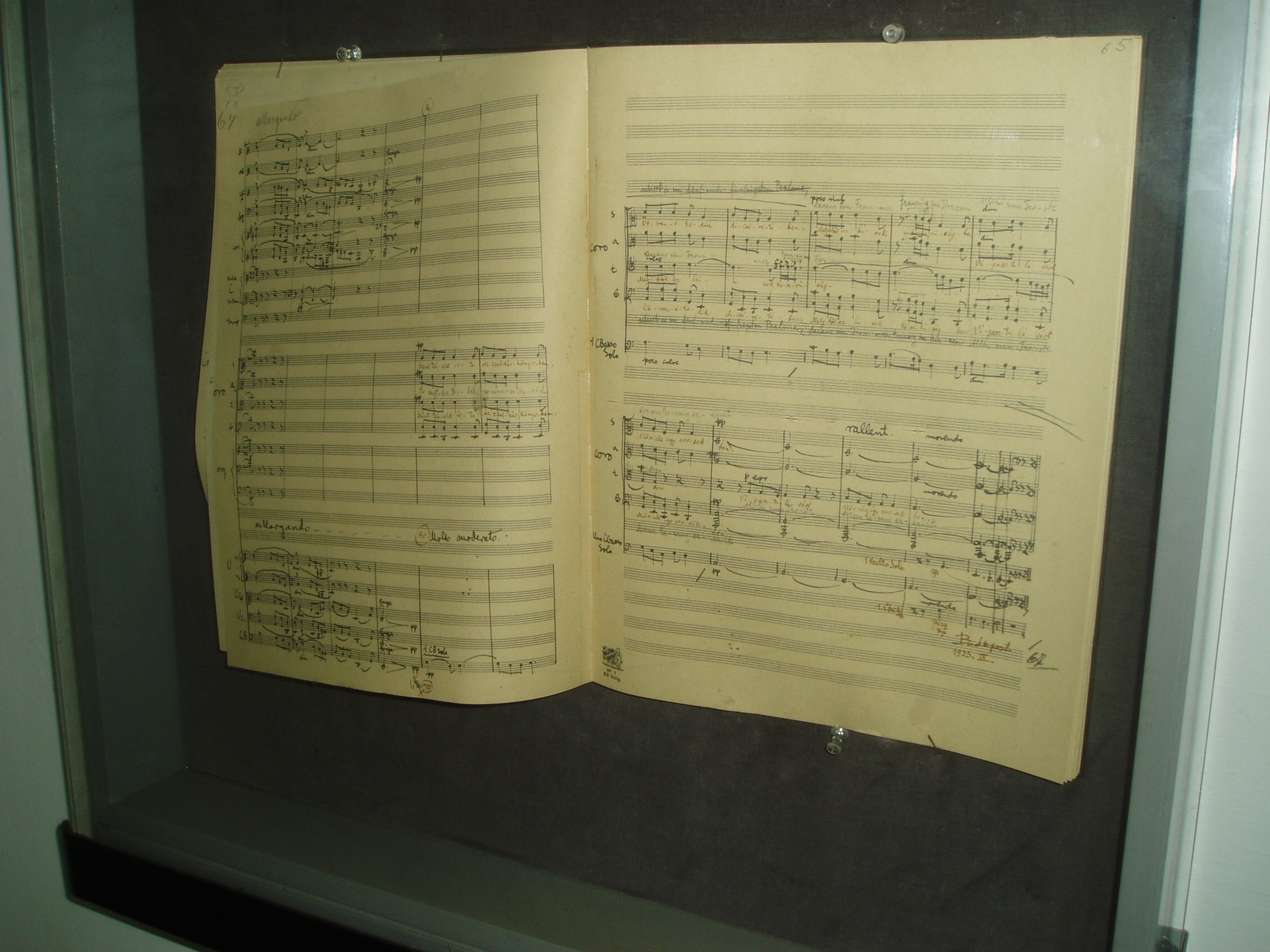 Nyilvános 1146 | 1674 | Kecskemét, Kéttemplomköz 1. Kodály Intézet | A kecskeméti születésű Kodály Zoltán zenepedagógiai törekvéseit és nevelési rendszerét az egész világra kisugárzó Kodály Zoltán Zenepdagógiai Intézet otthona középkori épületrészek és alapfalak felhasználásával ferences kolostornak épült 1702–1736 között. Az épületet Kerényi József tervei szerint 1975-ben alakították át az újonnan alapított Kodály Intézet céljaira. A ragyogó átalakítás az új intézmény igényeit és a műemléki környezet minél teljesebb megóvását egyaránt figyelembe vette. Az 1980-as évek elején — ugyancsak Kerényi József tervei alapján — új szárnnyal bővítették, amely irodáknak, tantermeknek, a zenei szakkönyvtárnak és az audiovizuális stúdiónak ad helyet. Mint az intézmény honlapján is olvasható, a Kodály Intézet a magyar zenepedagógia világszerte ismert és elismert műhelye. Kodály zenei nevelési koncepciójának elméleti és gyakorlati oktatására továbbképzéseket szervez magyar zenetanárok, valamint éves tanfolyamokat külföldi szakemberek számára. A földszinti folyosókon a nagyközönség számára is látogatható állandó Kodály–kiállítást rendeztek, amelyet alkalmankét időszaki tárlatok egészítenek ki. A képen a kiállítás egyik kincse, a Psalmus Hungaricus kéziratos partitúrája látható. A kolostor egykori refektóriuma ma kiváló akusztikájú hangversenyterem. A kerengő által közrefogott belső udvaron is gyakran rendeznek nyári koncerteket. A fénykép 2006 augusztusában készült. Felh. irod.: Heltai Nándor: Kecskemét. Kecskeméti Lapok, 1998 www.kodály-inst.hu |