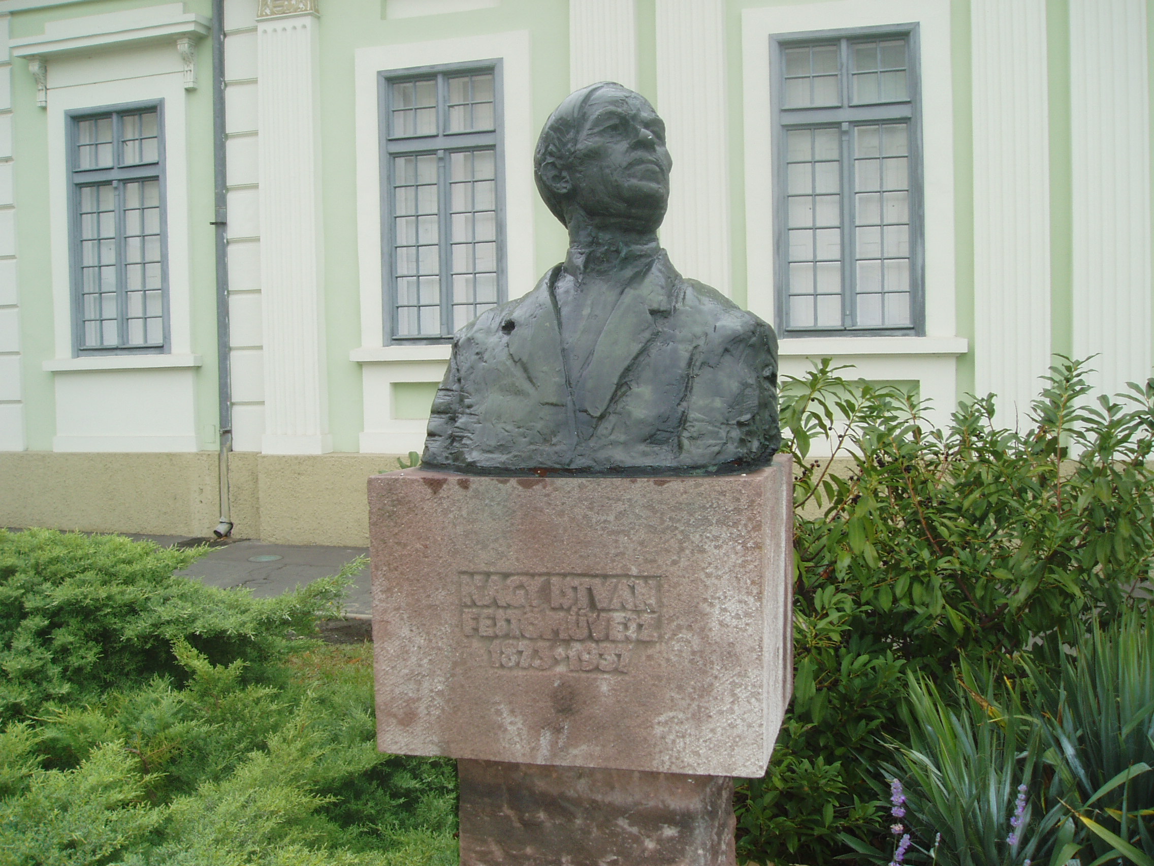 Nyilvános 1481 | 3152 | Rövid leírás | Teljes leírás (612 B) | Baja, Arany János utca 1. Az egykori Vojnich-kúria 1820 körül épült klasszicista stílusban. 1946 és 1953 között ez az épület adott otthont a Rudnay Gyulának és az általa vezetett művésztelepnek. A kúria ma a Nagy István Baján élt (lásd: Baja, Nagy István u. 8.) festőről elnevezett képtár otthona. Az épület előtti teret Nagy István bronz mellszobra, Varga Imre alkotása díszíti. A fénykép 2007 októberében készült. Felh. irod.: Látnivalók Bács-Kiskun megyében. Miskolc, Well-PRess, 2002 |
