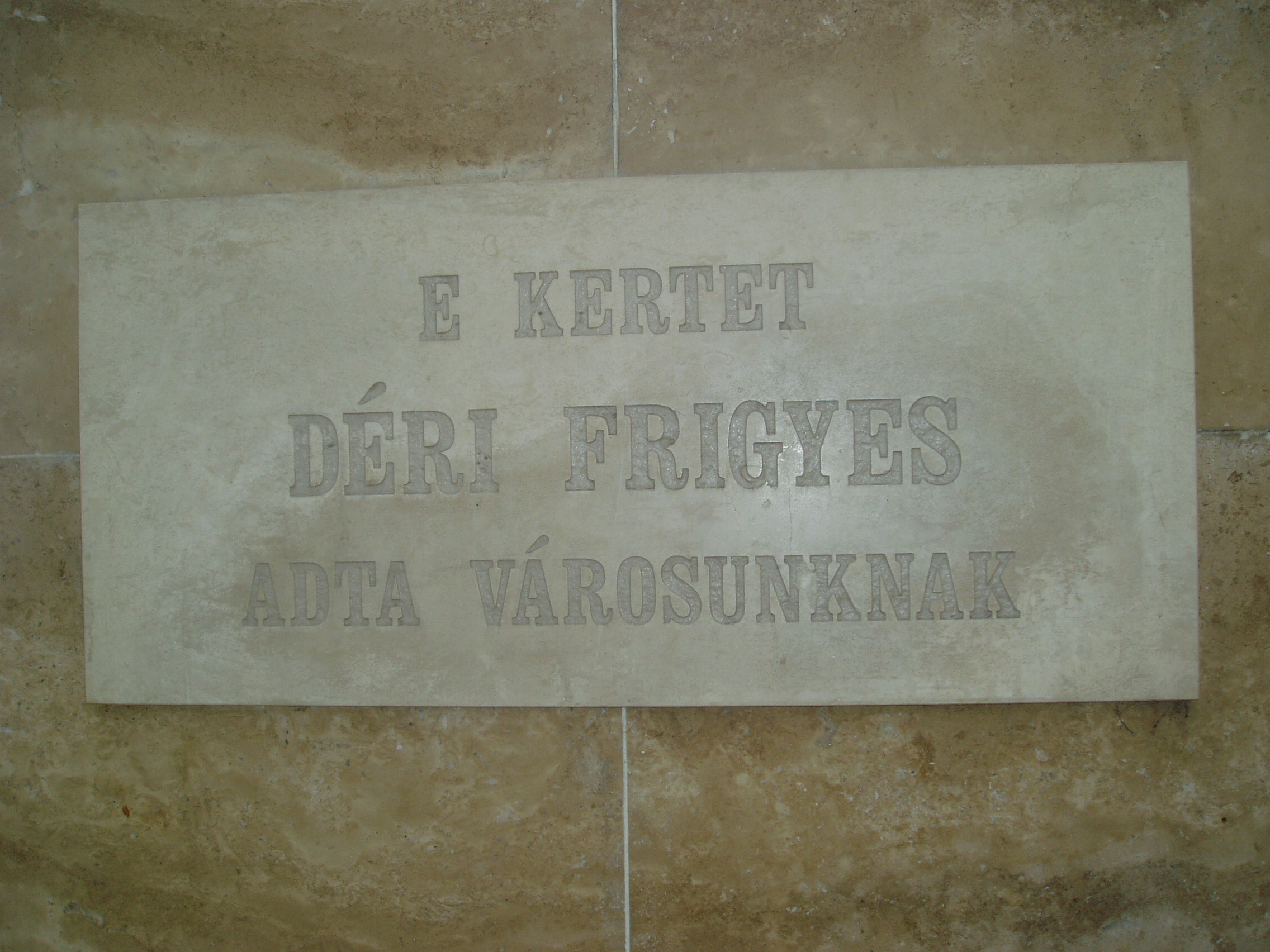 Nyilvános 1432 | 3254 | Rövid leírás | Teljes leírás (1.33 KB) | Baja, Déri kert A belváros romantikus parkja Déri Frigyes, a bajai származású, szülővárosába dúsgazdagon hazatérő selyemgyáros, műgyűjtő nevét viseli, hiszen a szép sétakert az ő kezdeményezésére jött létre. Déri Frigyes röviddel az első világháború kitörése előtt gyermekkora városának ajánlotta fel gazdag egyetemes kultúrtörténeti gyűjteményét és könyvtárát. Fel akarta építeni a közművelődés házát, ezért vásárolta meg a ferences barátok kertjének egy részét, s azt a városnak ajándékozta. Az első világháború kitörése miatt azonban tervének megvalósítását a "béke helyreállta utáni" időkre halasztották. A háború után 1919-ben azonban Baja szerb megszállás alá került, s Déri - bizonytalannak ítélve a város sordát - visszavonta adományát, s gyűjteményét Debrecennek ajándékozta (lásd: Hajdú-Bihar megye/Debrecen, Déri tér 1.). Az általa megvásárolt területen pihenőparkot hoztak létre. Bejáratánál emléktábla örökíti meg Déri Frigyes nevét, akinek a parkban mellszobrát is felállították. A fénykép 2007 októberében készült. Felh. irod.: Látnivalók Bács-Kiskun megyében. Miskolc, Well-PRess, 2002 www.museum.hu/museum/index_hu.php?ID=108 |