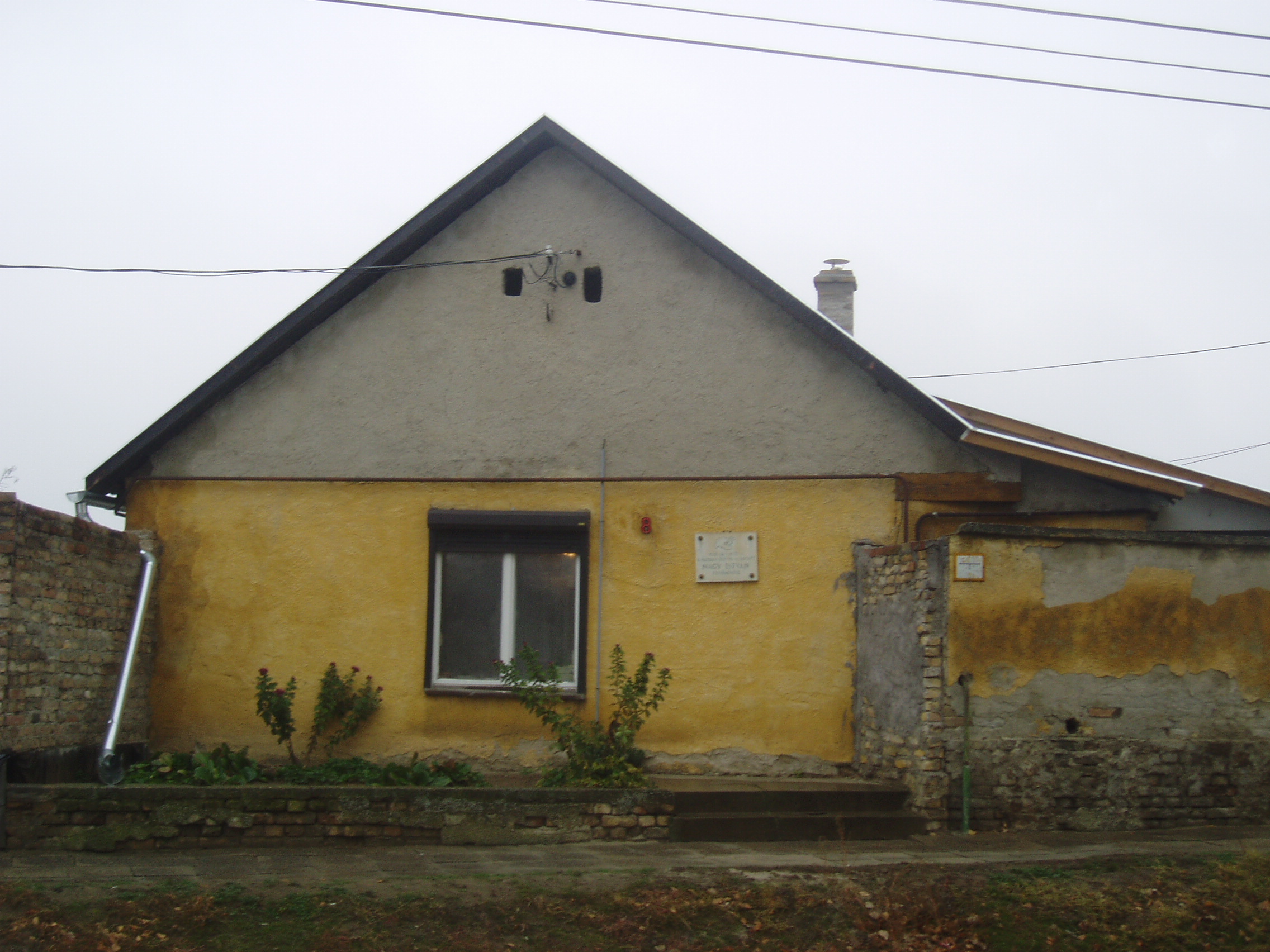 Nyilvános 1081 | 1622 | Baja, Nagy István utca 8. | Mint a homlokzatán elhelyezett emléktáblán is olvasható, ebben a kis házban töltötte életének utolsó évtizedét Nagy István (1873-1937) festőművész, akit már a kortársak is „a székelyek Rembrandtjá”-nak, „a magyar Van Gogh”-nak neveztek. A Csík megyéből származó művész egy alföldi kistelepülésen tanítóként működött, amikor egy iskolai kiállítás alkalmával felfedezték tehetségét. Így került a Mintarajztanodába, Székely Bertalan mellé, majd 1899-ben Münchenbe, ahol több akadémiai díjat nyert. Ösztöndíjjal jutott ki 1900-ban a párizsi Julian Akadémiára és 1902-ben Olaszországba. Visszatérve szülőföldjén, az erdélyi Csík megyében telepedett le és kezdett dolgozni a Gyilkos-tó környékén. Részt vett az első világháborúban, s noha hivatalosan nem volt hadifestő, a fronton számos rajzot készített, főként katonaportrékat. A háború után rövid ideig Erdélyben élt, majd Budapestre költözött, de megfordult Szentes környékén, Koszta József mellett is. Nagyszabású gyűjteményes kiállítása 1923-ban általános elismerést vált ki. Többek között Kosztolányi Dezső és Lyka Károly írtak alkotásairól lelkesedéssel, Surányi Miklós pedig regényt írt róla. A húszas évek második felében ismét Erdélyben dolgozott és itt is állított ki, bejárta Magyarországot, volt Jugoszláviában, míg betegsége végleges letelepedésre kényszerítette. Feleségével és fiával ekkor telepedett le Baján. Itt hunyt el 1937-ben, sírja abban a temetőben (lásd: Baja, Kálvária temető) van, amelyre naponta rálátott ablakából. Több mint 4000 művét tartják számon. Legtöbb műve a róla elnevezett bajai képtárban (lásd: Baja, Arany J. u. 1.) található. A fénykép 2007 októberében készült. Felh. irod.: Solymár István: Nagy István. Bp. Képzőművészeti Alap, 1977 Pap Gábor: Nagy István. Bp. Corvina, 1965 www.baja.hu |