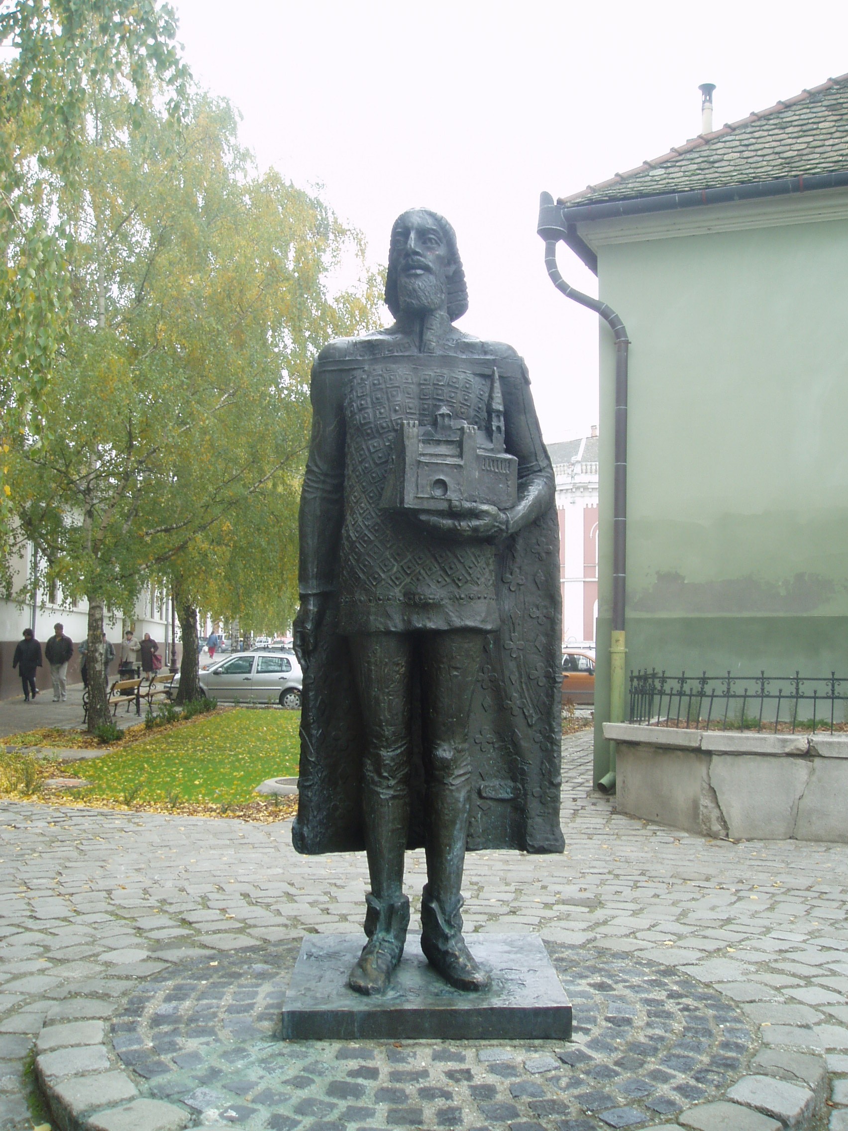 Nyilvános 1097 | 1729 | Baja, Szent Imre tér 5. III. Béla szobra | A gimnázium előtt 1986-ban állították fel a névadó III. Béla bronzszobrát, Kő Pál alkotását. Az 1757-ben alapított egykori ferences iskola 1879-től a ciszterci renddé lett. Ezután vette fel III. Béla király nevét, aki a cisztereket letelepítette Magyarországon. A fénykép 2007 októberében készült. Felh. irod.: Bálint László: A bajai III. Béla Gimnázium. Bp. Tankönyvkiadó, 1989 |