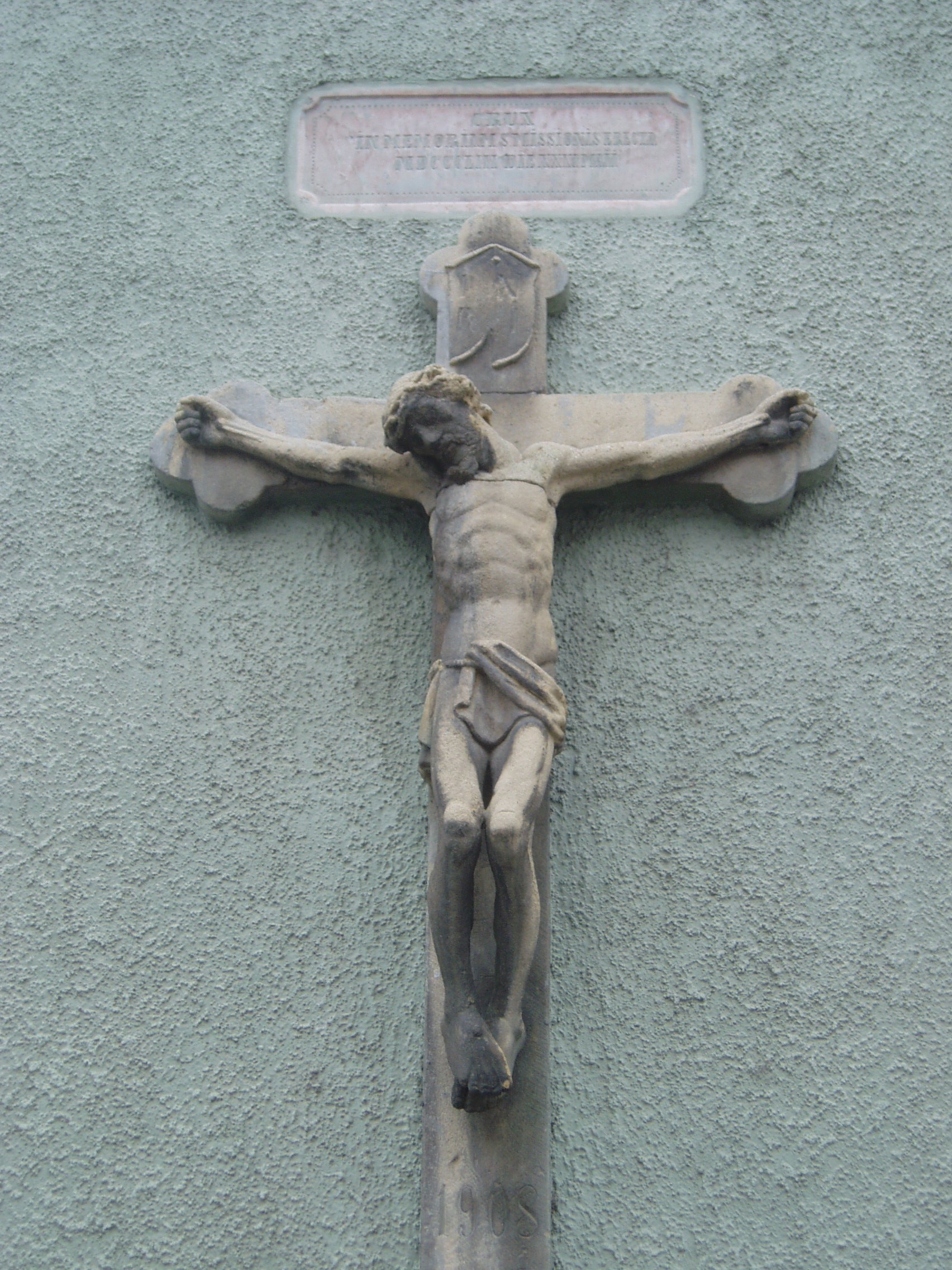 Nyilvános 1102 | 1578 | Baja, Szent Imre tér: Plébániatemplom | A Szent Péter és Szent Pál római katolikus plébániatemplomot 1765-ben Grassalkovich Antal építtette barokk stílusban. A képen a templom külső falán 1853-ban állított feszület látható. A fénykép 2007 októberében készült. Felh. irod.: Látnivalók Bács-Kiskun megyében. Miskolc, Well-PRess, 2002 |
