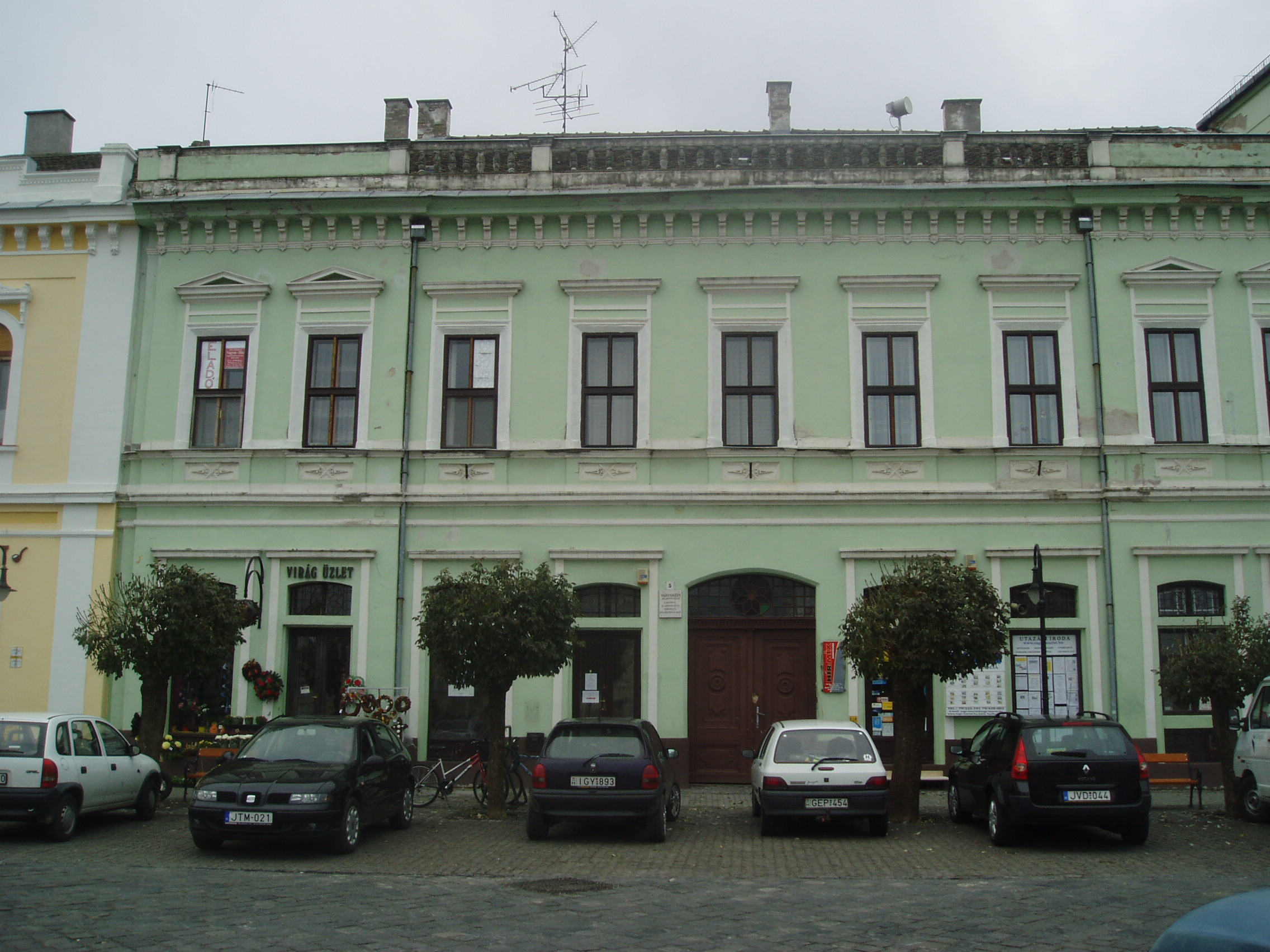 Nyilvános 1119 | 1907 | Baja, Szentháromság tér 5. | A bajai Szentháromság teret magyarországi Szent Márk térként emlegetik. Értékét nemcsak épületei, hanem kövezete is adja. A teret, amely három oldalról beépített, s nyitott negyedik oldala a Sugovicára néz, lóhere formában keresztezik az utak. A teret városképi jelentőségű épületek veszik körül. A 5. házszámú, klasszicista eredetű városi palotát 1870 körül építették újjá eklektikus stílusban. A fénykép 2007 októberében készült. Felh. irod.: Látnivalók Bács-Kiskun megyében. Miskolc, Well-PRess, 2002 |