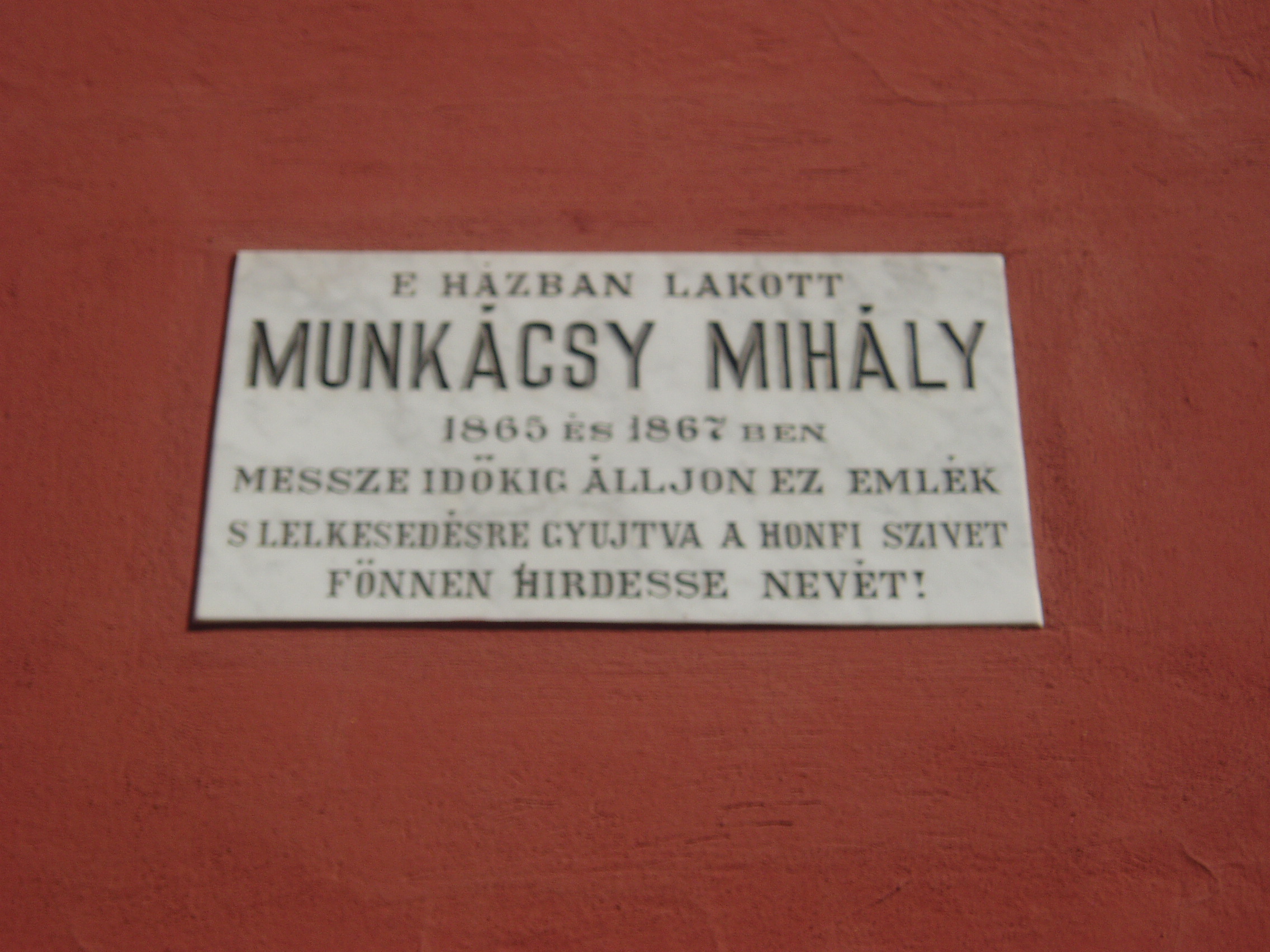 Nyilvános 1154 | 1691 | Pécs, Munkácsy utca 31. | A romantikus stílusú, földszintes lakóházon Munkácsy Mihály emléktáblája olvasható. 1865-ben és 1867-ben itt szállt meg rokonainál pécsi tartózkodásai idején. A fénykép 2006 júliusában készült. Felh. irod.: Csorba Csaba: Pécs. Bp. Panoráma, 1983 |
