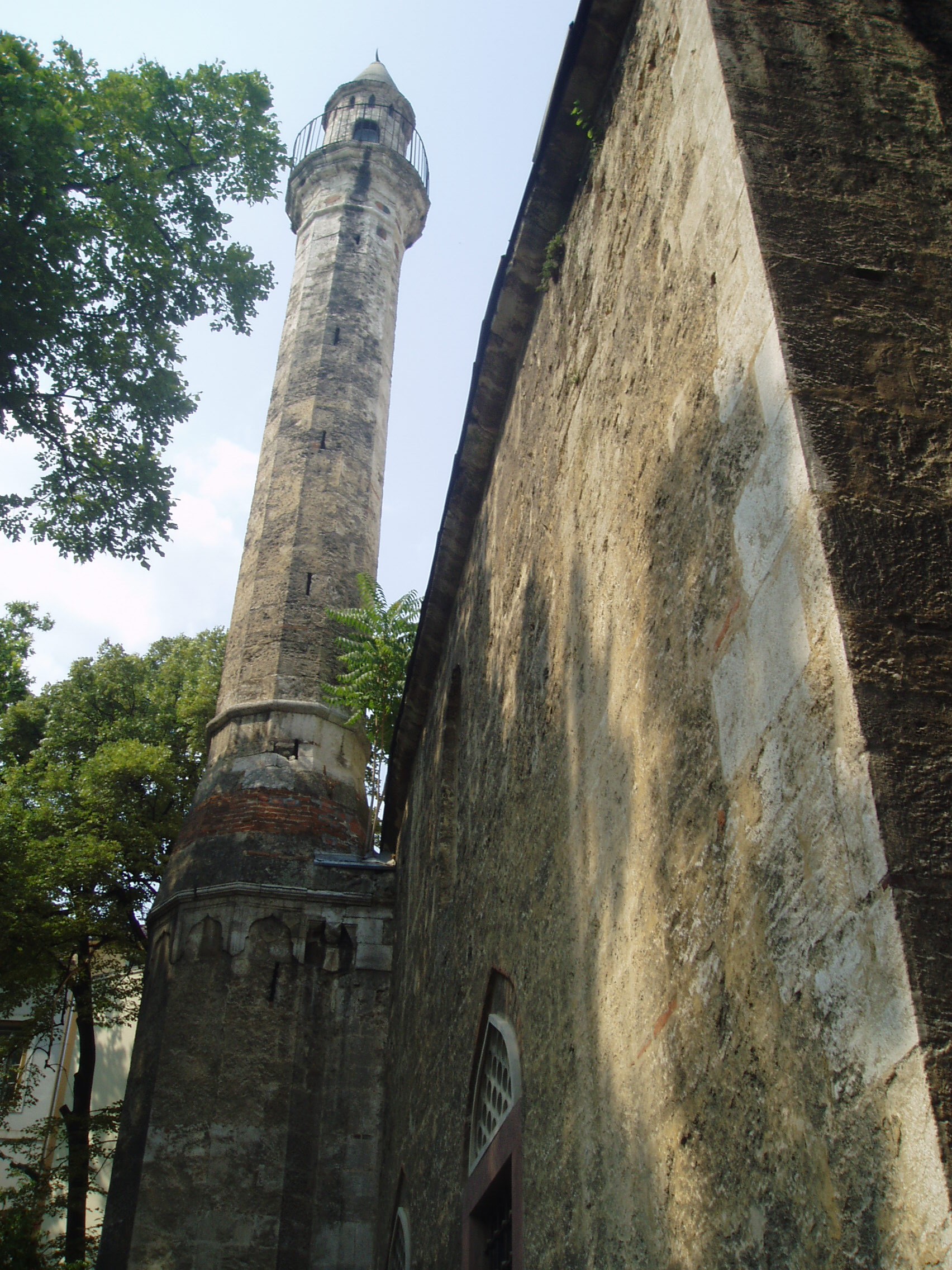 Nyilvános 1146 | 1680 | Pécs, Rákóczi út 2. Jakováli Hasszán pasa dzsámija | A Rákóczi út és a Garay utca által határolt háromszögben, a Rákóczi útról megközelíthetően áll Jakováli Hasszán pasa dzsámija és a hozzá épült minaret. A XVI. század második felében emelt épületegyüttes a legépebben álló magyarországi török templom. A négyzet alaprajzú dzsámi kupolája kívül nyolcszögű, belül kör keresztmetszetű dobon ül. Az épület falát szimmetrikusan elhelyezkedő szamárhátíves ablakok tagolják. A dzsámi a belső terében kiállított tárgyak révén, amelyek a Török Köztársaság kormányának ajándékai, egy működő török templom térélményét nyújtja. Falán néhány helyen sikerült feltárni az eredeti falfestést. A műemlék ma múzeumként látogatható. Falitárlókban török fegyverek, kerámiák, díszes rézedények, textilek tekinthetők meg, tablók mutatják be a török–magyar harcokat és Mohamed próféta életét. A fénykép 2006 júliusában készült. Felh. irod.: Csorba Csaba: Pécs. Bp. Panoráma, 1983 |