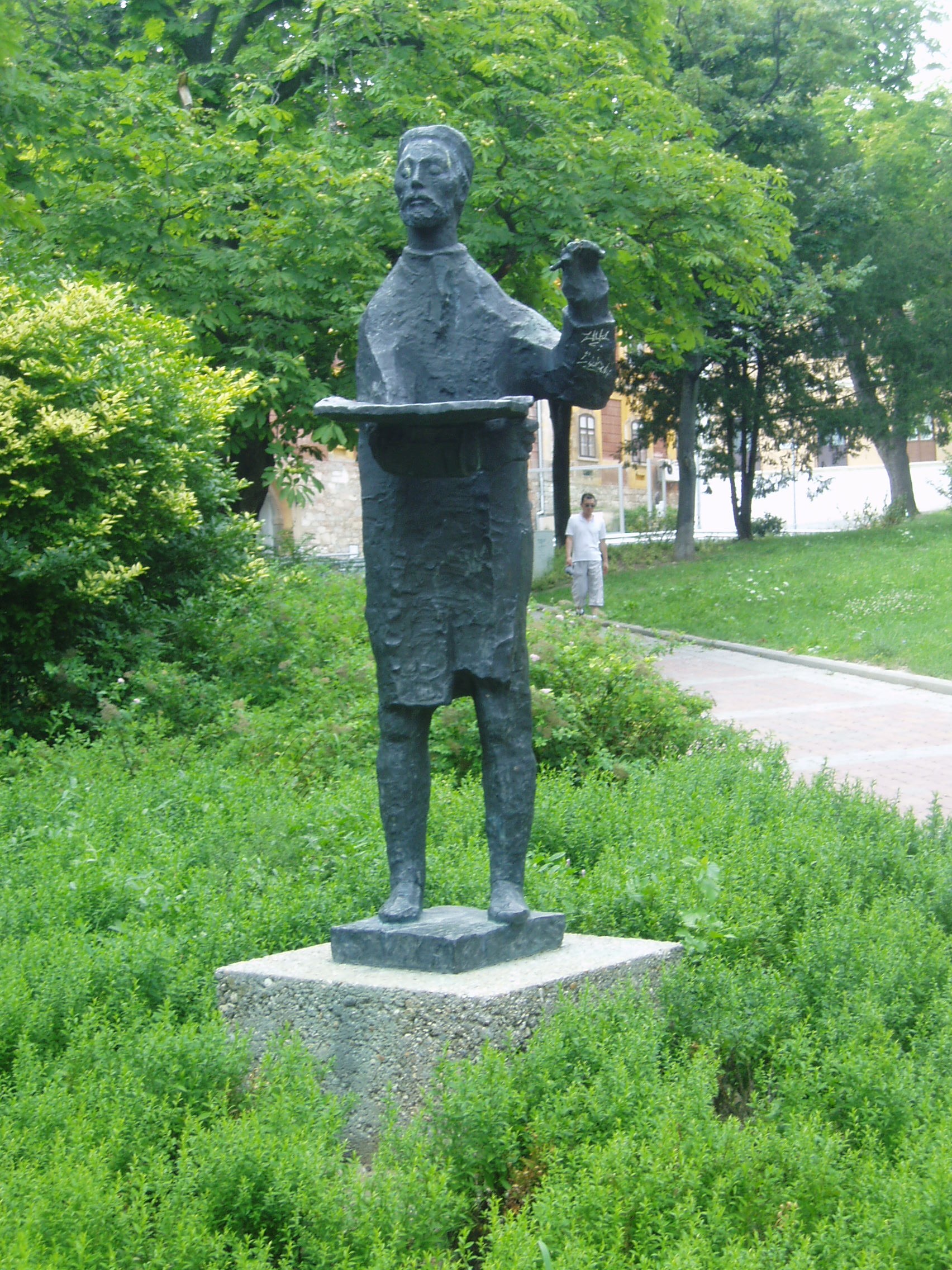 Pécs,Janus P. u. 11.előtt Csontváry szobor.071.jpg