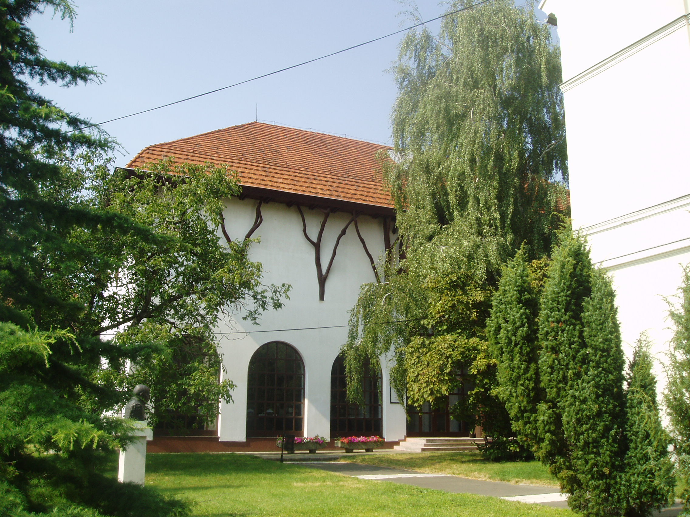 Nyilvános 1397 | 1881 | Sárospatak, Rákóczi utca 1. Református Kollégium Repositoriuma | A Kollégium udvarán jobbra emelkedik a Makovecz Imre által tervezett, 1986-ban emelt Repositorium. Az épület a könyvtári, levéltári, adattári raktárak mellett helyet ad jeles személyiségek - többségükben egykori pataki diákok - hagyatékának, könyvgyűjteményének. Itt van Béres Ferenc zenei könyvtára (1988); Cs. Szabó László londoni könyvtára (1985); Halmi Róbert modern angol nyelvű könyvtára (1987); Király István irodalomtörténeti gyűjteménye (2006); Szathmáry Lajos amerikai magyar emigrációs hagyatéka (1987); Vitéz Ferenc amerikai magyar református püspök könyvtára (2002). A fénykép 2007 augusztusában készült. Felh. irod.: Látnivalók Borsod-Abaúj-Zemplén megyében. Miskolc, Well-PRess, 1995 |
