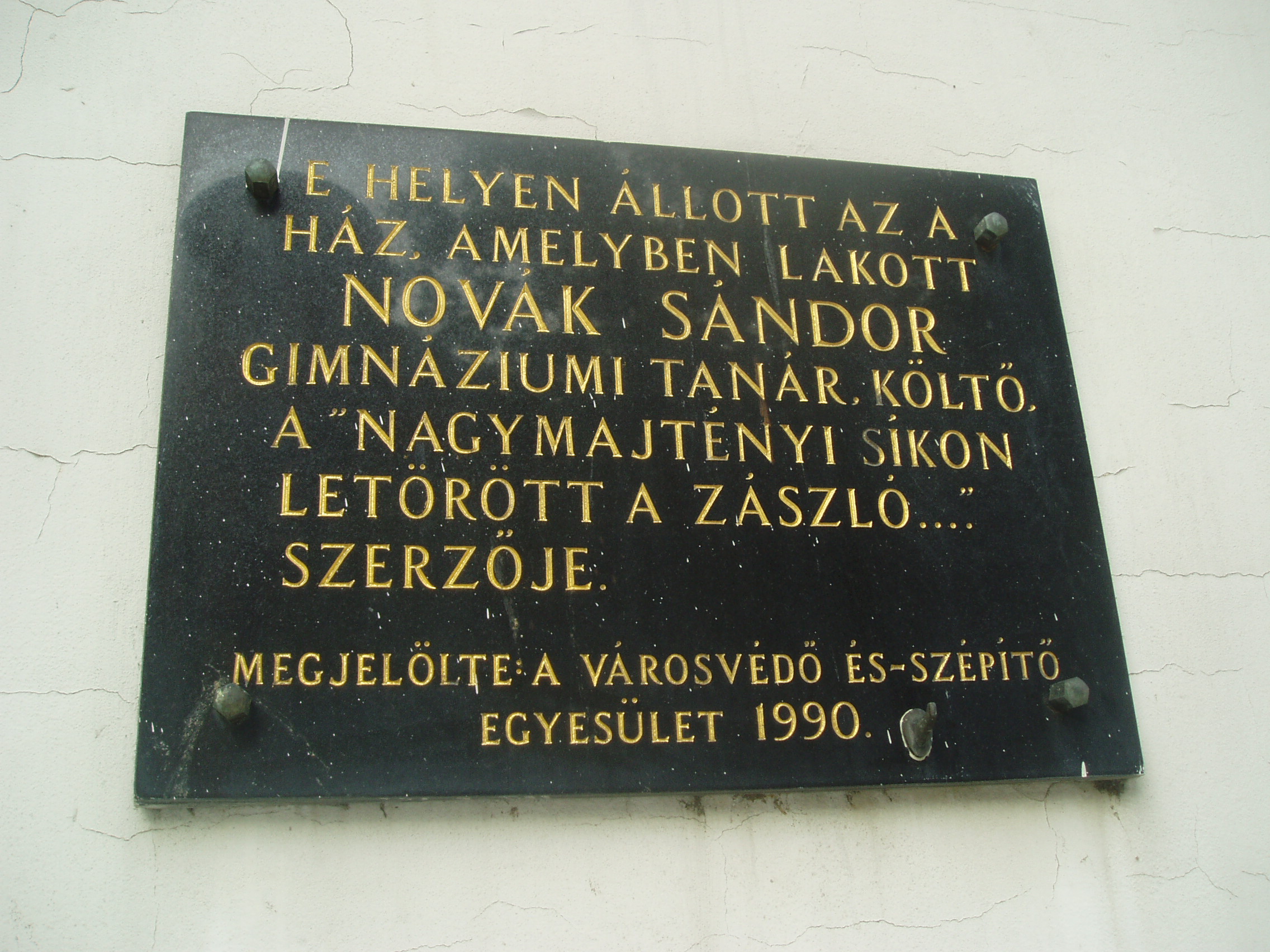 Nyilvános 1092 | 1582 | Sárospatak, Rákóczi utca 32. | Az épület voltaképpen már a Hild tér részét képezi, amelyet Makovecz Imre és az általa a munkába bevont fiatal építészek tervei alapján alakítottak ki az 1980-as években. Itt, a Hild tér felőli oldalon helyezték el Novák Sándor gimnáziumi tanár emléktábláját: E HELYEN ÁLLOTT AZ A HÁZ, AMELYBEN LAKOTT NOVÁK SÁNDOR GIMNÁZIUMI TANÁR, KÖLTŐ, A „NAGYMAJTÉNYI SÍKON LETÖRÖTT A ZÁSZLÓ….” SZERZŐJE. MEGJELÖLTE A VÁROSVÉDŐ ÉS –SZÉPÍTŐ EGYESÜLET 1990. Az eredeti, a Rákóczi utca 44. számot viselő lakóházat, amelyet még 1966-ban jelöltek meg emléktáblával, lebontották. Az emléktáblán is említett, országszerte kuruc dalként ismert ének zenéjét és szövegét valójában Novák Sándor írta, aki a XX. század első évtizedeiben volt a gimnázium tanára. A fénykép 2007 augusztusában készült. Felh. irod.: www.sarospatak.hu/nevezetessegek Barsi Ernő – Szabó Ernő: A pataki kollégium zenei krónikája. Bp. Zeneműkiadó, 1984 |