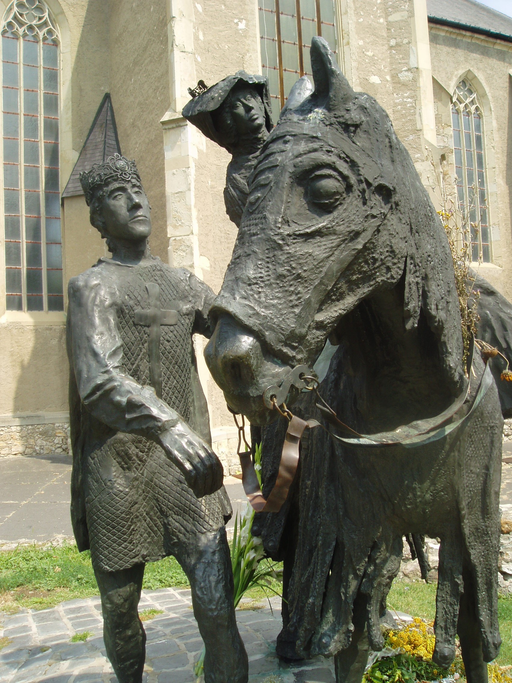 Nyilvános 1378 | 2041 | Sárospatak, Szent Erzsébet utca | A Vártemplom oldalbejáratánál áll Varga Imre 1985-ben felállított, Szent Erzsébetet és férjét, Thüringiai Lajos őrgrófot megörökítő lovas szoborcsoportja. A hagyomány szerint Erzsébet rövid élete során többször is hazalátogatott, s a Wartburg vára és Patak közti távolságot lóháton tette meg. Szent Erzsébet 1207-ben Sárospatakon született, Gertrudisz királyné és II. Endre király lányaként. Nagy valószínűséggel a Vártemplom román kori elődjében - amelynek maradványai a szobor közelében láthatók - keresztelték meg. A fénykép 2007 augusztusában készült. Felh. irod.: Látnivalók Borsod-Abaúj-Zemplén megyében. Miskolc, Well-PRess, 1995 |