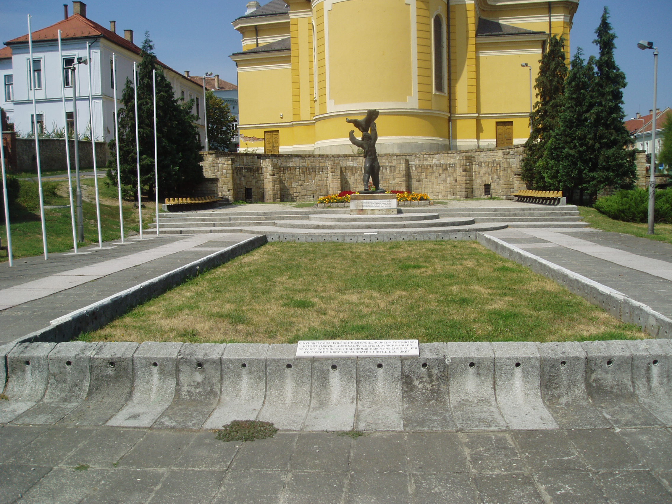 Nyilvános 992 | 1727 | Sátoraljaújhely, Hősök tere: a börtönkitörés emlékhelye | A Nagytemplom déli oldalánál alakították ki az 1944. március 22-i sátoraljaújhelyi börtönkitörés emlékhelyét. A pázsit alatt a tragikus események áldozatai - több nemzet fiai - nyugszanak. A monumentális, 1948-ban felállított szobor, melynek címe "Sassal viaskodó ifjú", Kerényi Jenő alkotása. Magyarország 1944. március 19-i német megszállása után az újhelyi börtönből kitörést szerveztek az itt őrzött politikai foglyok. A sikertelen lázadást kegyetlen megtorlás követte. A részletes eseményeket lásd: www.zhe.hu/Harcterkutatas/Satoraljaujhely/ujhelymain.html A kitörés áldozatainak holttestét a felkelés leverését követően ideiglenes sírokba, temetői árkokba helyezték. A háború befejezését követően, 1945. november 3-án ünnepélyes keretek között, ökumenikus szertartás keretében helyezték őket örök nyugalomra a közös sírban. 1948-ban felállították Kerényi Jenő szobrát, de hivatalos, állami felavatására a megváltozott politikai helyzetben nem került sor. Az 50-es években a felkelés és az antifasiszta mozgalom még életben levő tagjait perbe fogták, meghurcolták, s enyhülést csak a következő évtized hozott. Addigra a szobor már szimbólummá vált. Az emlékhelyet csak 1991. március 22-én avatta fel hivatalosan Göncz Árpád köztársasági elnök. A tragikus események és a hősök emlékét a börtön (lásd: Sátoraljaújhely, Kazinczy utca 35.) épületén is emléktáblák idézik. A fénykép 2007 augusztusában készült. Felh. irod.: www.zhe.hu/Harcterkutatas/Satoraljaujhely/ujhelymain.html Látnivalók Borsod-Abaúj-Zemplén megyében. Miskolc, Well-PRess, 2003 www.vendegvaro.hu |
