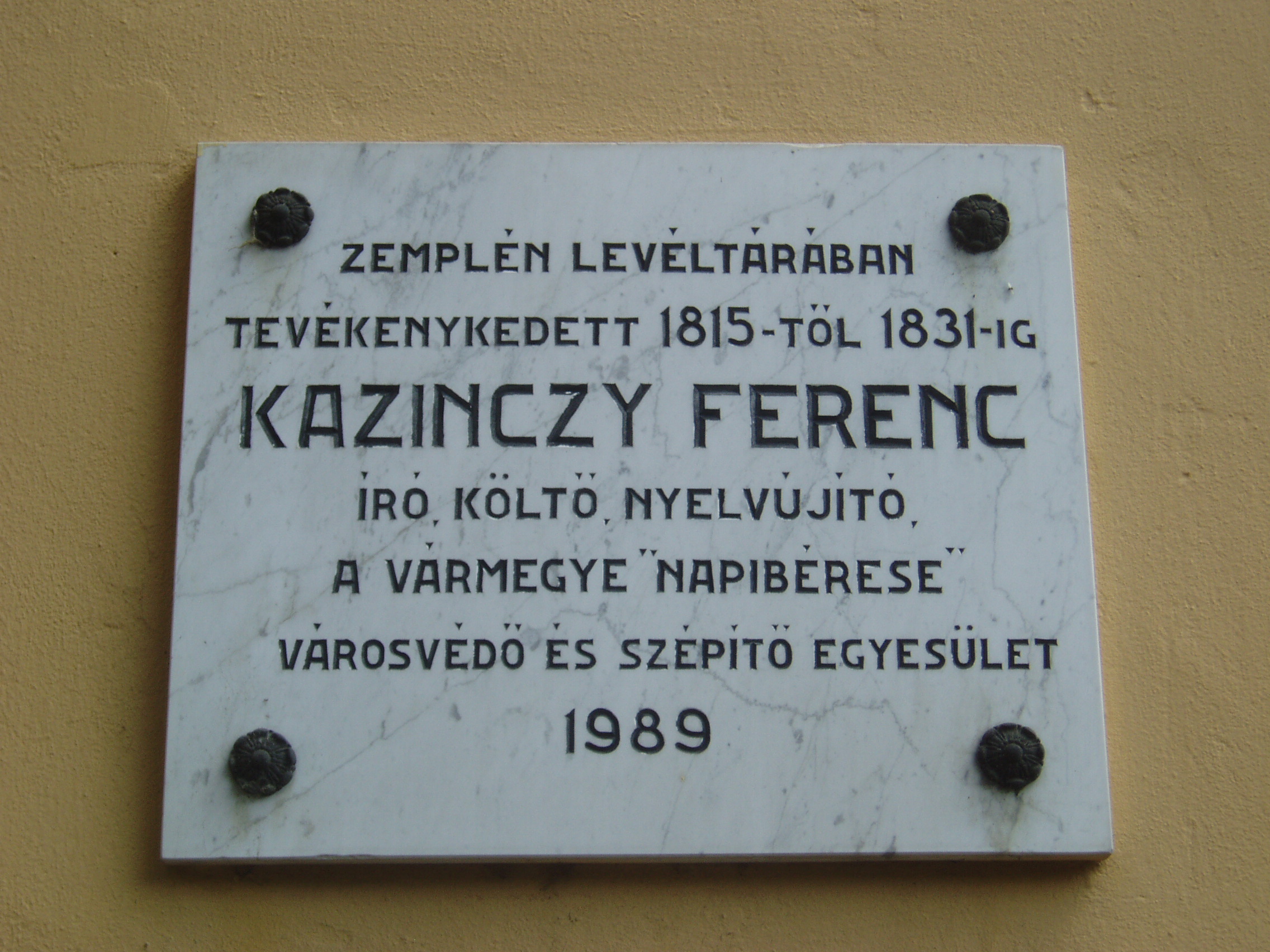 Nyilvános 1433 | 2013 | Sátoraljaújhely, Kossuth tér 5. | A városháza (volt megyeháza) a fő tér hangulatát meghatározó barokk stílusban épült 1754-1768 között. Az olasz építészek által tervezett épület impozáns méreteivel az állandóság és a méltóság érzetét kelti. A főbejárat fölötti erkélyről mondta a fiatal Kossuth első szónoklatát 1831-ben - a koleralázadás idején. Emeleti dísztermét történelmi személyiségek arcképei, fából készített, festett karzat, megyecímer és emléktáblák díszítik. Az épület északi szárnyának emeletén helyezték el Zemplén vármegye levéltárát. Berendezése műemlék: az országban szinte egyedülállóan őrzi a XVIII-XIX. századi "levelestárak" hangulatát. Barokk bútorzatát helybéli mesterek készítették, az iratok elhelyezésének logikai rendjét Szirmay Antal (1747-1812) történetíró alakította ki. Legkorábbi dokumentuma V. István király özvegyének, Kun Erzsébetnek adománylevele 1272-ből. Itt dolgozott 1816-tól haláláig, 1831-ig Kazinczy Ferenc, mint a vármegye főlevéltárnoka. Bányácskán - amelyet ő nevezett el Széphalomnak - levő kúriájából naponta gyalog járt be munkahelyére. Hatalmas munkát végzett az iratok, okiratok rendezésével, különleges értékű gyűjtemény-együtteseket alakítva ki. A levéltárban ma is megtalálható Kazinczy egykori íróasztala és a saját maga tervezte ötfokú lépcsőállvány, amelyet a köznyelv „Kazinczy lovának" nevez. Pátzay Pál által 1968-ban készítette mellszobra a belső udvaron áll. Az épület homlokzatán feliratos tábla is őrzi emlékét. A városháza hivatali időben, a levéltár bejelentkezéssel látogatható. A fénykép 2007 augusztusában készült. Felh. irod.: Látnivalók Borsod-Abaúj-Zemplén megyében. Miskolc, Well-PRess, 2003 http://tokaj-turizmus.wplanet.hu/irodalmiut/_Toc108758785 www.satoraljaujhely.hu/nevezetessegek www.vendegvaro.hu |