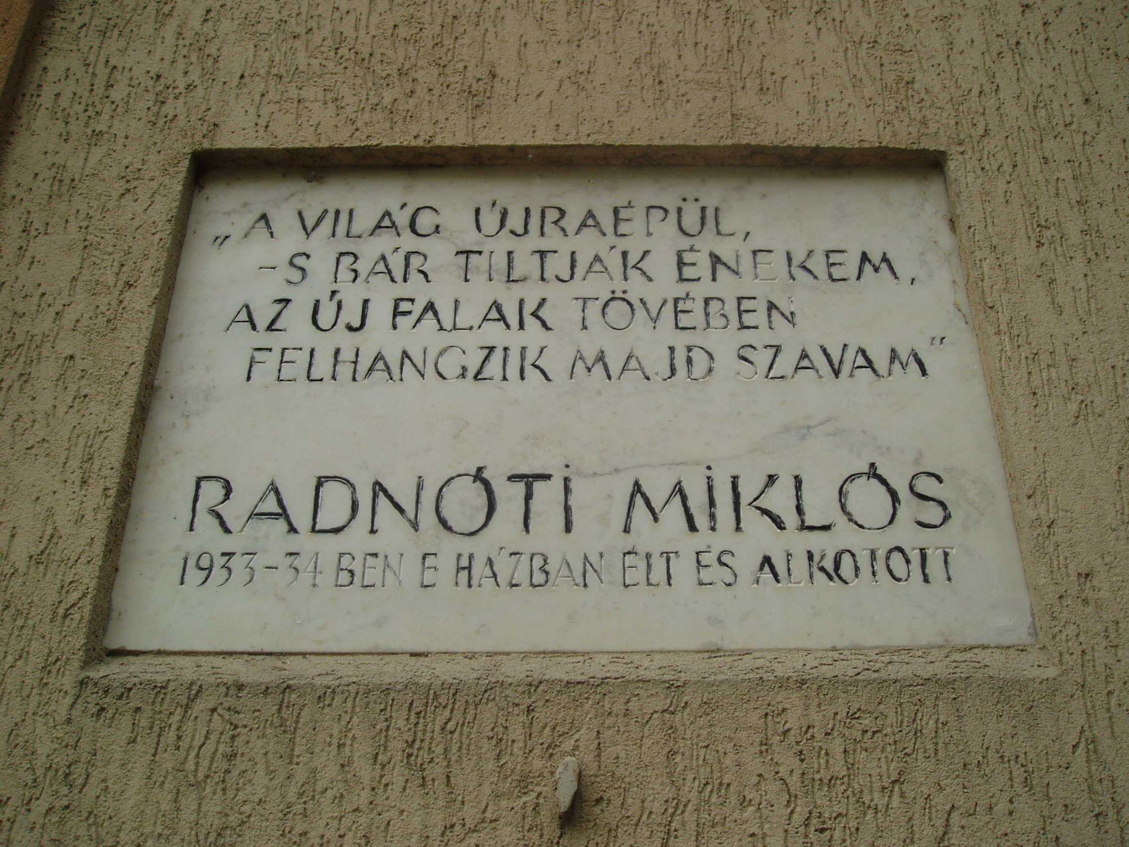 Nyilvános 1100 | 1641 | Szeged, Bokor utca 2. | A Boldogasszony sugárutat keresztező Bokor utcában, a különc Wolf Ferenc tiszti főorvos érdekes házában lakott utolsó szegedi egyetemi éveiben Radnóti Miklós. A kis kertes családi ház bejáratát kicsi székelykapu díszíti. Radnóti egy magasföldszinti szobában lakott. Itt írta meg doktori értekezését (Kaffka Margit művészi fejlődése), s itt születtek meg egyebek között Pontos vers az alkonyatról és Kortárs útlevelére című versei. A ház emeletén diáktársa és barátja, Tolnai Gábor lakott. A fénykép 2007 júliusában készült. Felh. irod.: Péter László: Szeged. Bp. Panoráma, 1981 |