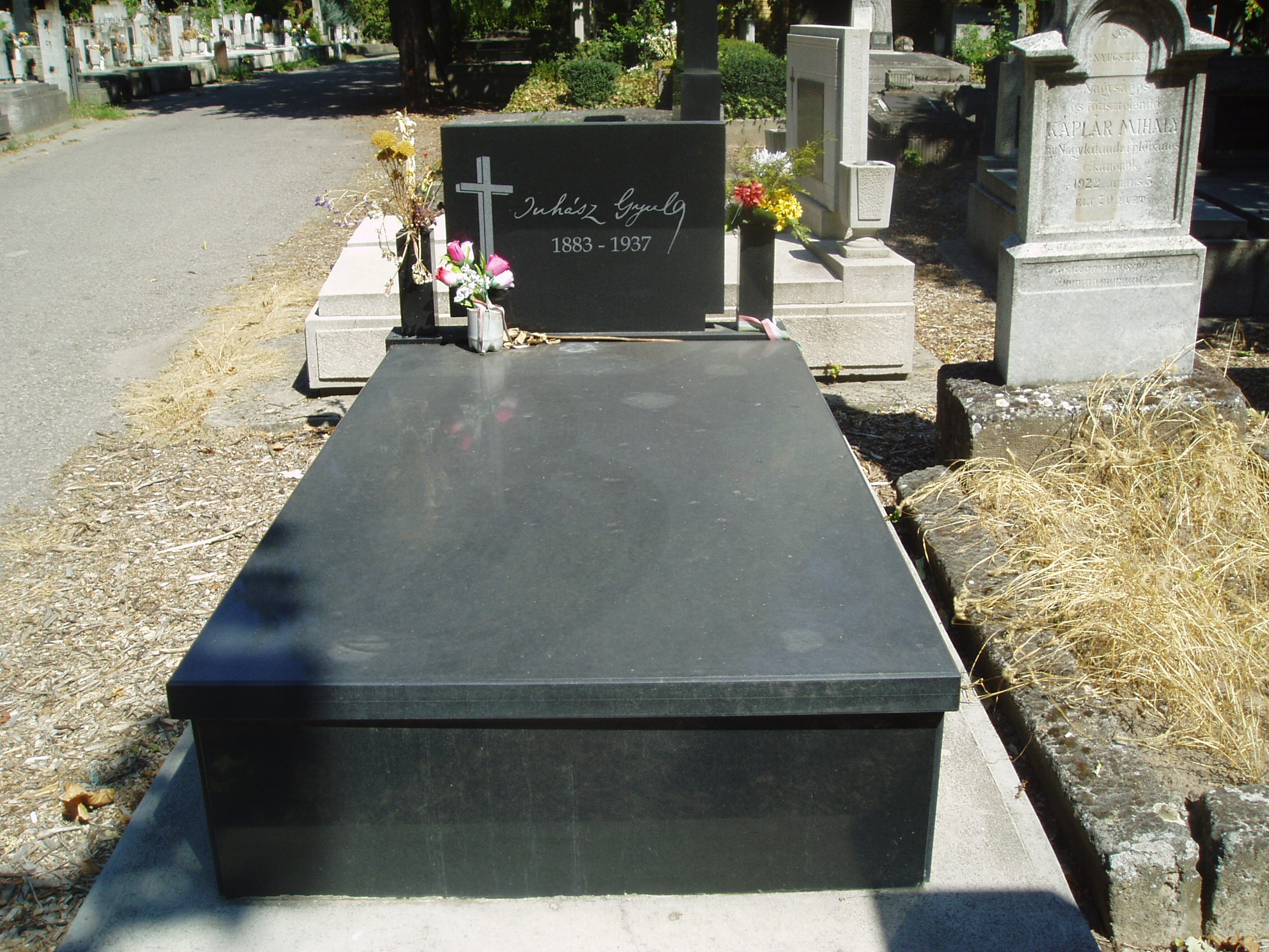 Nyilvános 1106 | 3924 | Szeged, Fonógyári út: Belvárosi temető: Juhász Gyula sírja | A temetőt az 1831. évi kolerajárvány után létesítették. Itt nyugszik az 1937. április 6-án Szegeden (lásd: Szeged, Juhász Gyula utca 4.) elhunyt Juhász Gyula. A fénykép 2007 júliusában készült. Felh. irod.: Péter László: Szeged. Bp. Panoráma, 1981 |