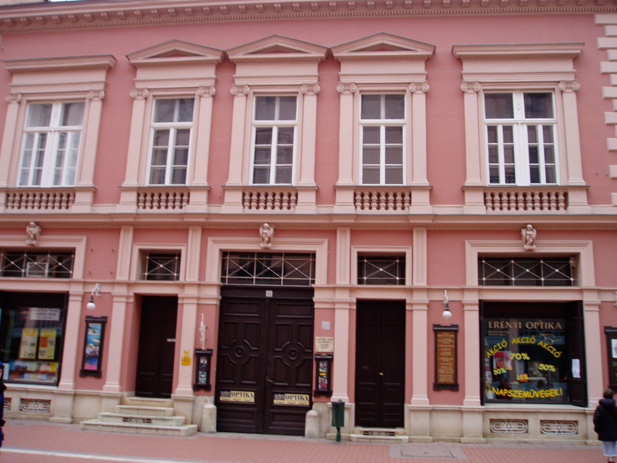 Nyilvános 1059 | 1905 | Szeged, Kárász utca 15. | Szeged egyik legszebb kora eklektikus lakóházát Herczel Fülöp orvos építtette. Fia, Herzel Manó (1862-1918) európai hírű sebész volt. 1911 és 1922 között e házban volt Braun János hangszerkészítő műhelye; itt játszódik mostohaunokájának, Berczeli Anzelm Károlynak Mesterhegedű című, 1978-ban megjelent regénye. Ugyancsak ebben a házban volt a Bethlen Gábor Kör székhelye. Itt tartott előadást 1940. január 12-én Irodalmi és magyar sorsproblémák címmel Móricz Zsigmond, aki akkoriban, Rózsa Sándor-trilógiájához anyagot gyűjtve (lásd: Szeged, Indóház tér 3.) gyakori vendég volt Szegeden. A fénykép 2007 júliusában készült. Felh. irod.: Péter László: Szeged. Bp. Panoráma, 1981 |