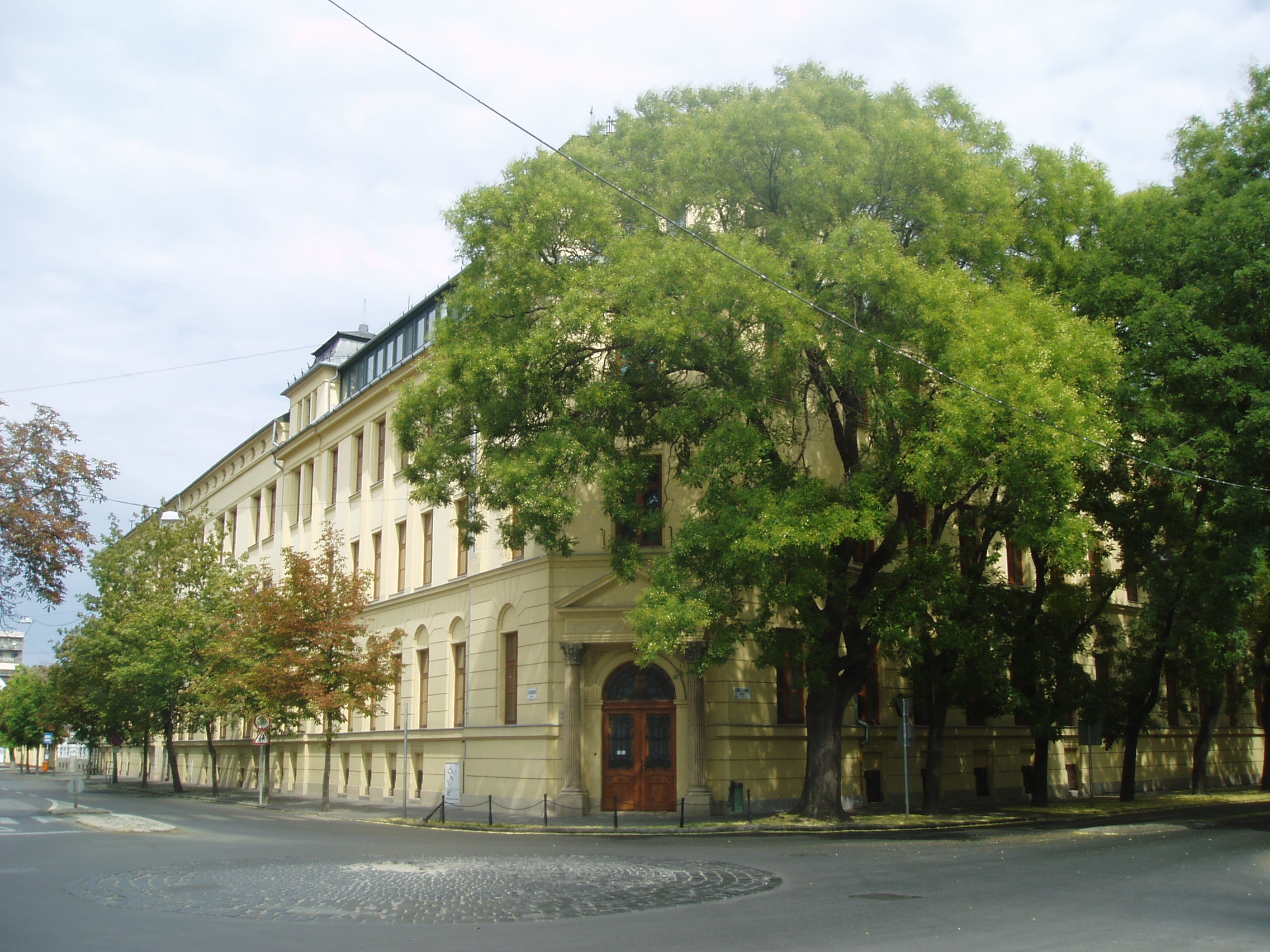 Nyilvános 1447 | 2203 | Szeged, Szentháromság utca 70-76. | Az egyházi Karolina Iskola épületében az elmúlt rendszer idején a Juhász Gyula Tanárképző Főiskola Ének–zene Tanszéke működött. Itt tanított Kardos Pál Liszt–díjas karnagy, aki 1961–1972 között a főiskola leánykarát is vezette. Kardos Pál tanári személyisége, művészi igényessége meghatározóvá vált növendékei és kollégái körében. Emléktábláját 2002. március 22-én avatták fel az épület falán. Az épületen portrédomborműves emléktábla idézi Bálint Sándor néprajztudós (1904–1980), „a legszögedibb szögedi” alakját, aki 1937 és 1941 között az itt működő Iskolanővérek tanítóképzőjének tanára volt. A fénykép 2007 júliusában készült. Felh. irod.: Tizenkét év kőben és ércben. Szeged, Önkormányzat, 2002 |