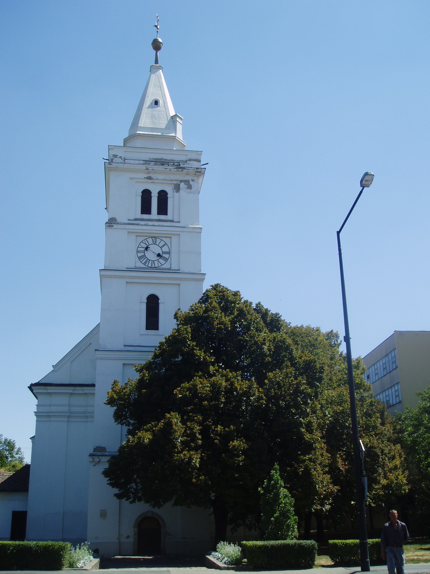 Nyilvános 1460 | 3340 | Rövid leírás | Teljes leírás (1.73 KB) | Hódmezővásárhely, Kossuth tér: Református Ótemplom A parkosított Kossuth tér a város főtere. Délkeleti sarkán áll a város legrégibb, legjelentősebb műemléke, a református ótemplom és a vele hajdan szerves kapcsolatban álló magtár. Az épület fiókos dongaboltozatú hajója 1721 és 1723 között készült el. Két évtized múlva a templom köré lőréses téglafalat építettek, amelynek keleti és déli szakasza ma is megvan. A toronyban helyezték el a nagyecsedi kastély II. Rákóczi Ferenctől elkobzott óráját, csengettyűjét, amelyeket a város akkori földesura, gróf Károlyi Sándor adott el az egyháznak. A templom hajdan kazettás, festett, stilizált virágmotívumokkal díszített fatáblás mennyezetét és karzatát a budapesti Iparművészeti Múzeum, a papok padját a helyi Tornyai János Múzeum (lásd: Hódmezővásárhely, Szántó–Kovács János u. 16–18.) őrzi. A templom jeles lelkésze volt Szőnyi Benjámin (1717–1794). Megválasztása után, 1743-ban külföldi tanulmányútra ment: az Odera–menti Frankfurt, Leyden és Utrecht egyetemein hallgatott teológiát. Hazaérkezése után csaknem ötven évig működött ebben a templomban. Országos elismerést szerzett teológiai témájú könyveivel, valamint számos kiadást megért "Szentek hegedűje" című énekeskönyvével. Feliratos sírköve — epitáfiuma — az épület külső falánál látható. A fénykép 2007 júliusában készült. Felh. irod.: Barangolások Csongrád megyében. Miskolc, Well-PRess, 1997 /Vendégváró/ Arató László - Batyi Zoltán: Hódmezővásárhely az alföldi művészváros. Hódmezővásárhely, 2004 |