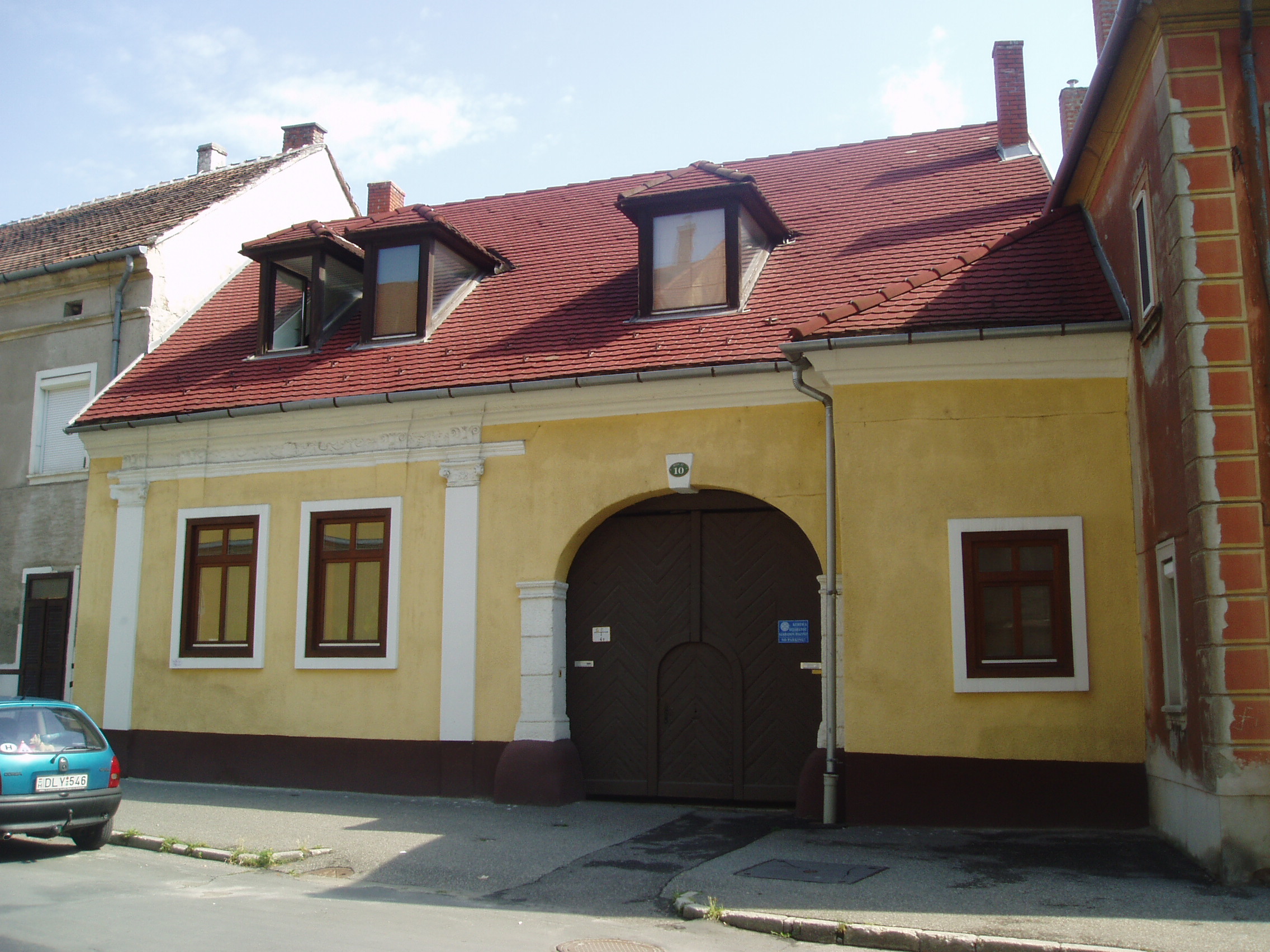 Nyilvános 1459 | 1954 | Sopron, Bécsi út 10. | A földszintes barokk lakóház a XVIII. század közepe táján kapta mai alakját. Előzőleg Esterházy herceg tulajdonában volt, később iparosok birtokolták.Jobboldalt nyíló kapuját toszkán fejezetes pillérek és záróköves kosárív keretezi. A fénykép 2008 júniusában készült. Felh. irod.: Czellár Katalin: Sopron. 3. jav. kiad. Bp. Panoráma, 2000 |