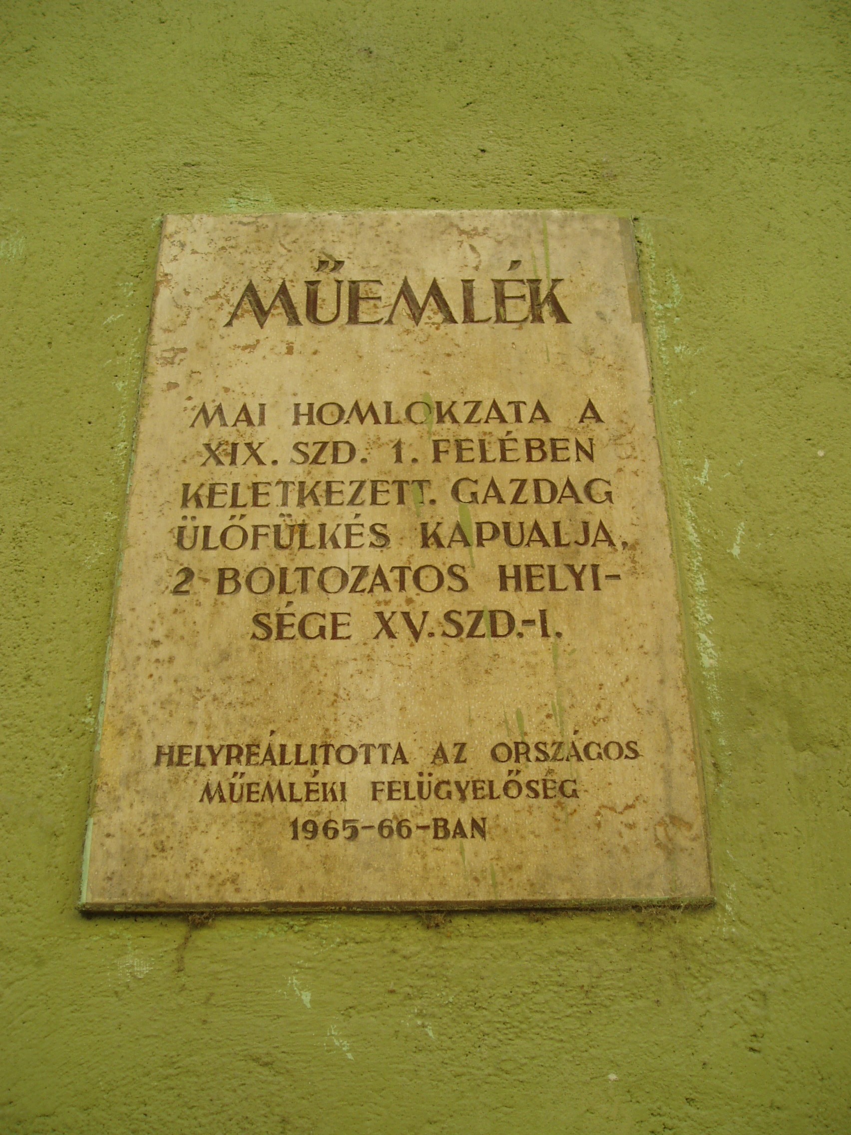 Nyilvános 1448 | 1653 | Sopron, Kolostor utca 7. | A középkori eredetű, akkor lakótornyos házat később klasszicista stílusban átalakították, de több helyen megőrződtek gótikus részletek: ablakok, falfestés, gótikus ülőfülkék a kapualjban, illetve két, keresztboltozattal fedett helyiség. A fénykép 2008 júniusában készült. Felh. irod.: Czellár Katalin: Sopron. 3. jav. kiad. Bp. Panoráma, 2000 |
