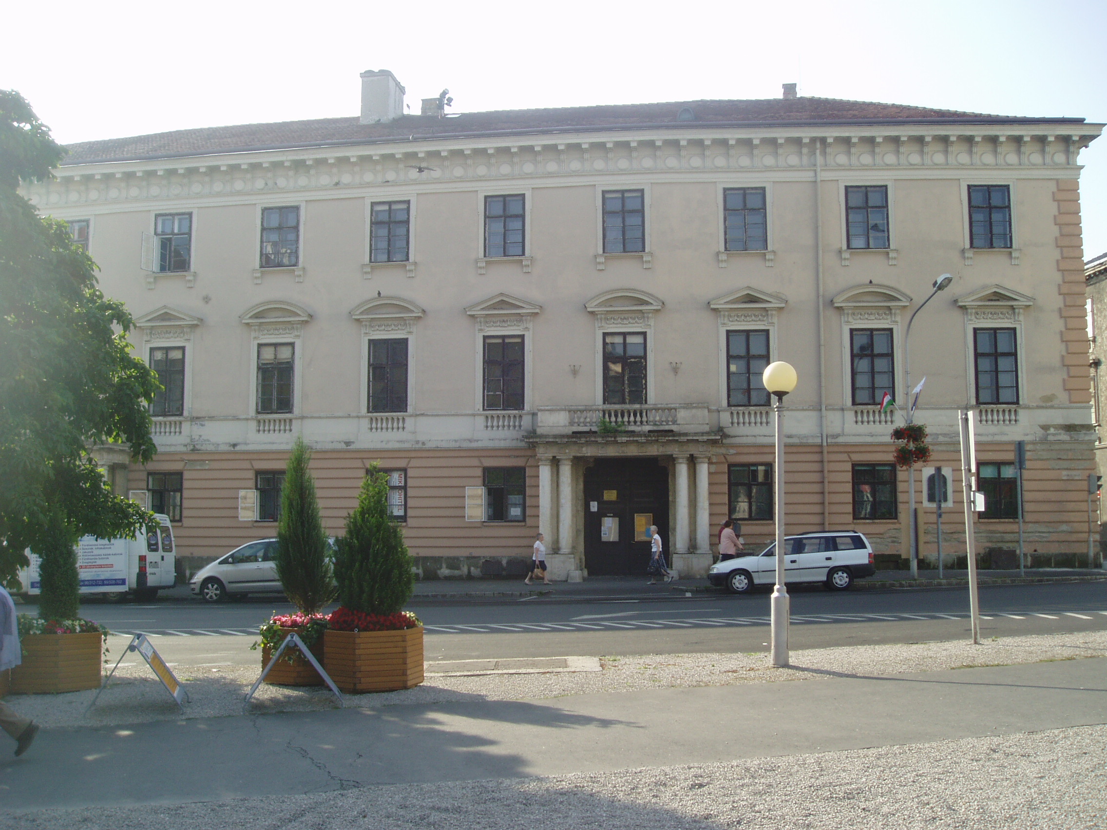Nyilvános 1375 | 1702 | Sopron, Széchenyi tér 1-2. Széchenyi-palota | A Széchenyi család palotája 1827-ben Hild Vencel tervei alapján épület három barokk ház helyén, amelyek 1765 után kerültek a család birtokába. E régi épületek egyikében őrizte Széchenyi Ferenc annak a gyűjteményének egy részét, amelyet 1802-ben, alapításakor, felajánlott a nemzet múzeumának. A ma itt álló palota végső formáját Széchenyi Pál megbízásából Koch Henrik építőmester alakította ki. A homlokzatán 1933-ban elhelyezett, Haich Erzsébet által készített portrédomborműves emléktábla arról tájékoztat, hogy itt töltötte gyermekéveit a legnagyobb magyar, Széchenyi István. A kép 2008 júniusában készült. Felh. irod.: Czellár Katalin: Sopron. 3. jav. kiad. Bp. Panoráma, 2000 |