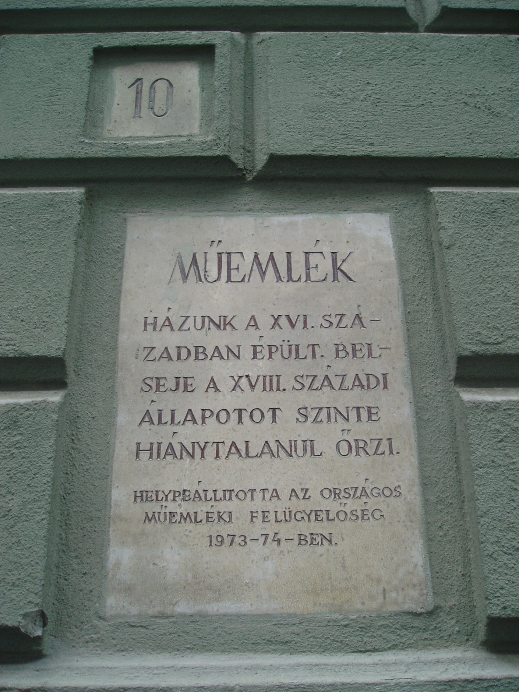 Nyilvános 1042 | 1408 | Sopron, Szent György utca 10. | Az egyemeletes barokk lakóház a XVI. században épült. A XIX. század második felében erősen átalakított homlokzata a XVIII. századból származik. Az épület belseje csaknem hiánytalanul őrzi XVIII. századi állapotát. Emeleti, boltozott utcai szobáiban virágdíszes festés látható. A kép 2008 júniusában készült. Felh. irod.: Czellár Katalin: Sopron. 3. jav. kiad. Bp. Panoráma, 2000 |