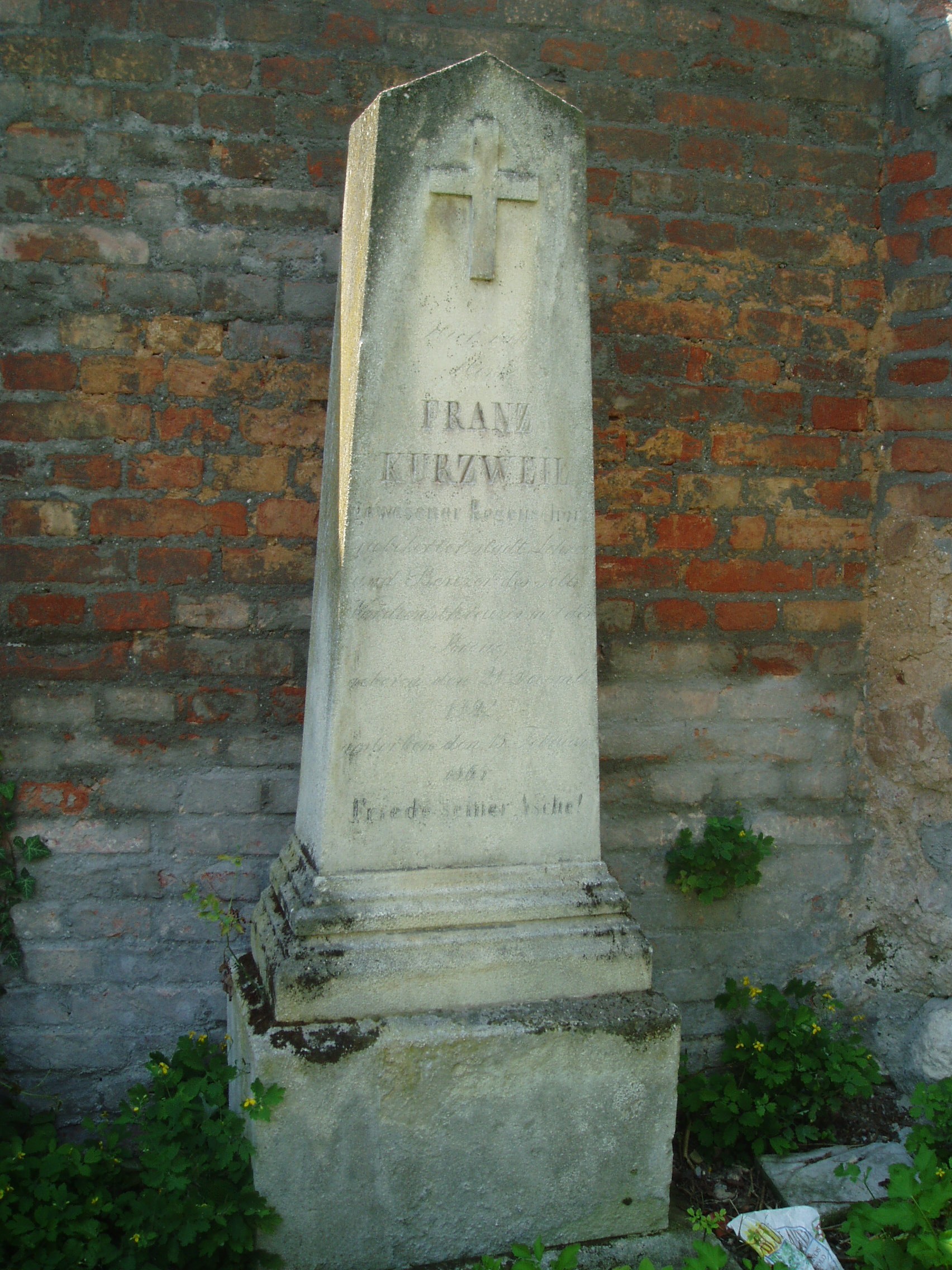 Nyilvános 1117 | 2915 | Sopron, Szent Mihály utca: Szent Mihály-temető: id. és ifj. Kurzweil Ferenc sírja | 1780-ban a Szent Mihály-templom udvarán kívül létesült a ma már teljesen betelt, régi-nek nevezett Szent Mihály-temető. Területét részben az egykori külső városfal ma is álló szakaszai határolják. Benne szép, XVIII-XIX. századi síremlékek láthatók Itt nyugszik a Sopron zenei életében jelentős szerepet játszott Kurzweil család több tagja. A képen látható sírban nyugszik id. és ifj. Kurzweil Ferenc. Id. Kurzweil Ferenc (1792–1865) a soproni katolikus egyházi zene legértékesebb vezetője és zeneszerzője volt. Nevéhez fűződik a Soproni Zeneegyesület megalapítása. Fia, ifj. Kurzweil Ferenc (1826–1875) 1857-től haláláig a Szent Mihály-templom karnagyaként működött. A kép 2008 júniusában készült. Felh. irod.: Czellár Katalin: Sopron. 3. jav. kiad. Bp. Panoráma, 2000 Síremlékek Győr-Moson-Sopron megyében. Bp. Nemzeti Kegyeleti Bizottság, 2004 |