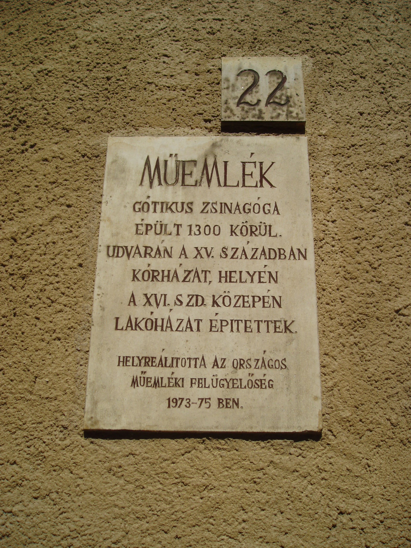 Nyilvános 1034 | 1507 | Sopron, Új utca 22-24. | A 22-24. házszámokkal jelölt épületegyüttes utcai homlokzatát ma két, különálló kapuval összekapcsolt épület alkotja. Mögöttük helyezkedik el a Középkori Ózsinagóga, Sopron zsidó hitközségének első imaháza, amely 1300-1320 körül épülhetett. A kép 2008 júniusában készült. Felh. irod.: Czellár Katalin: Sopron. 3. jav. kiad. Bp. Panoráma, 2000 |