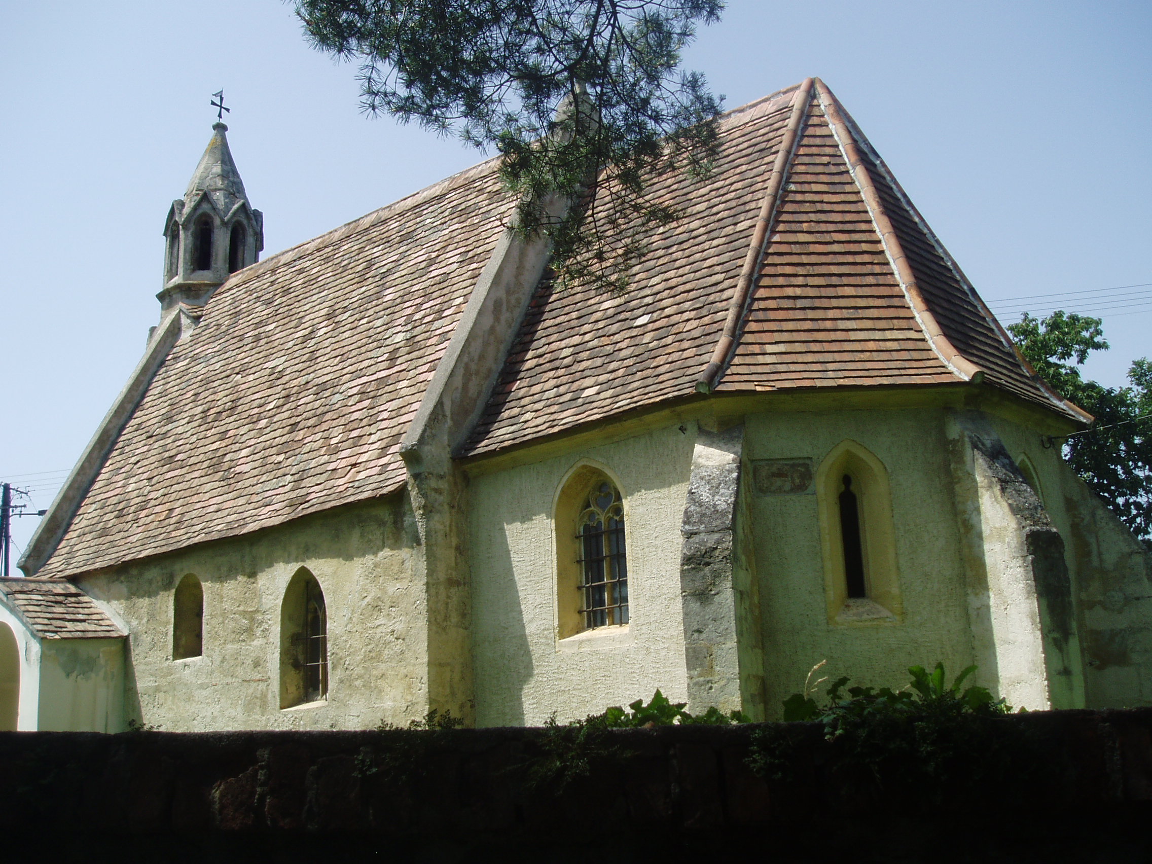 Nyilvános 1181 | 3272 | Sopronbánfalva: Bánfalvi út: Mária Magdolna-templom | A kis templom a falu egyik legértékesebb műemléke. 1291 előtt épült. Gótikus tornya a XIV. század elejéről származik, ugyancsak gótikus szentélye pedig a XV. századból. A kép 2008 júniusában készült. Felh. irod.: Czellár Katalin: Sopron. 3. jav. kiad. Bp. Panoráma, 2000 |