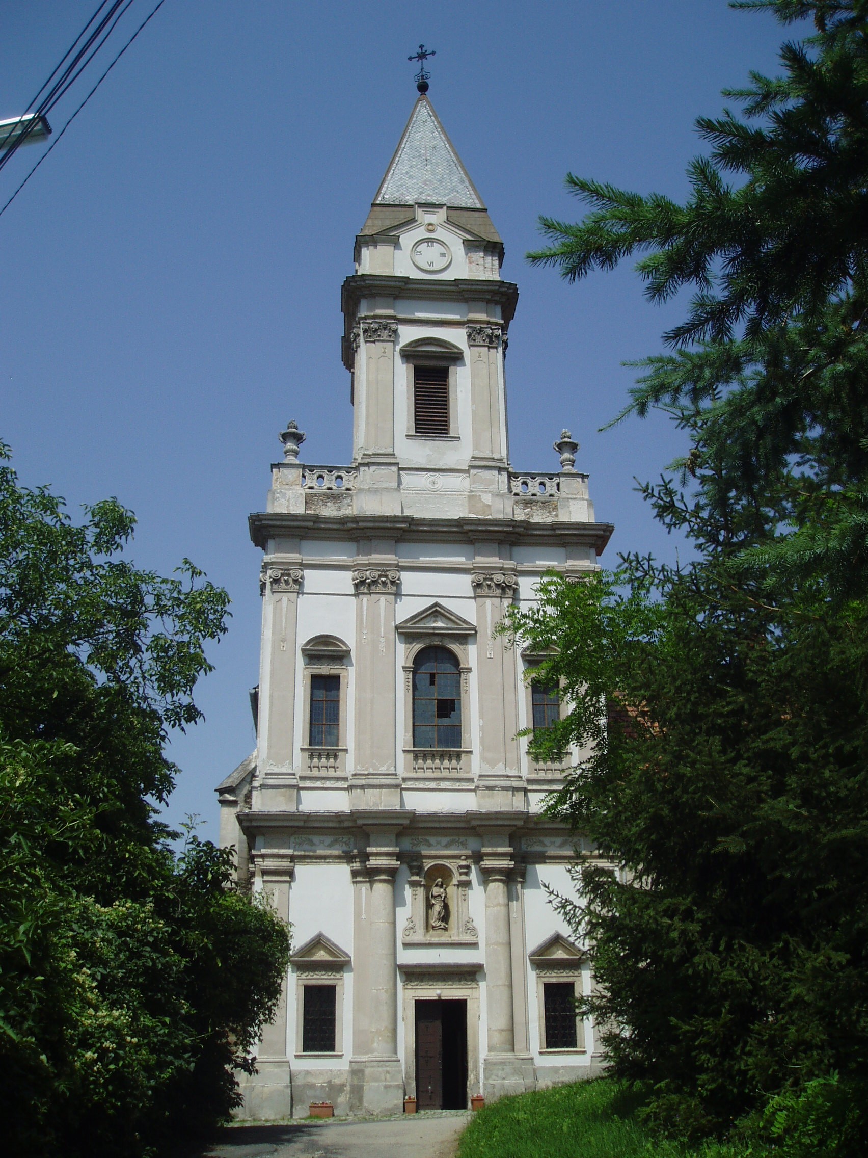 Nyilvános ![]() 729 | 1403 | Sopronbánfalva: Kolostorhegy út: Karmelita templom és kolostor | Sopronbánfalva fölött a Sopronból Brennbergbányára vezető út déli oldán magas domb emelkedik. A dombot uraló gótikus eredetű, első formájában a XV. század végén épült templom és a hozzá csatlakozó barokk kolostorszárnyak eredetileg pálos szerzetesek, majd karmelita apácák otthona volt. Az épületegyüttest a település központjával a meredek domboldalban egyenesen húzódó díszes lépcső köti össze, amelyet karmelita-, vagy pálos lépcsőként ismer a köztudat. A lépcső hét lépcsőkarból és hét pihenőből áll. A pihenőkön, a baluszteres mellvéden jobbról-balról egy-egy szent kőszobra áll. A kép 2008 júniusában készült. Felh. irod.: Czellár Katalin: Sopron. 3. jav. kiad. Bp. Panoráma, 2000 |