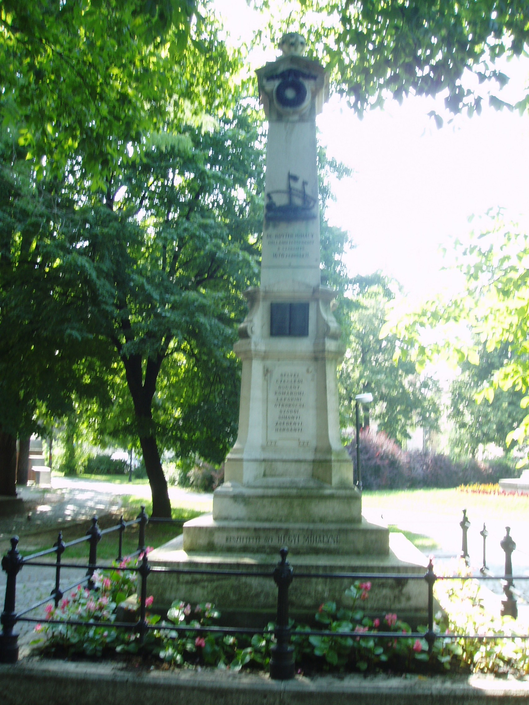 Nyilvános 1117 | 1952 | Debrecen, Emlékkert: Gályarabok emlékoszlopa | A Nagytemplom és a Kollégium között húzódik az Emlékkert. 1895-ben itt állították fel a Gályarabok emlékoszlopát. Az oszlop azoknak a református papoknak és tanítóknak emlékét őrzi, akiket a Wesselényi-összeesküvés leleplezése után I. Lipót császár ítélt gályarabságra 1673-ban. Az ellenreformáció áldozatait 1676. február 11-én Ruyter holland admirális váltotta ki a rabságból és küldte haza. Az emlékoszlopot özvegy Hegyi Mihályné állíttatta. Négy oldalán a gályarabságot túlélt és hazatért negyven református pap, illetve tanító nevét vésték fel. Köztük a Jablonczai név is olvasható: viselője Szabó Magda írónő egyik őse. Szabó Magda több könyvében is ír erről (Ókút, Régimódi történet). A fénykép 2006 júniusában készült. Felh. irod.: Kovács Gergelyné: Debrecen. Bp. Panoráma, 1981 Papp Antal: Debrecen. Bp. Panoráma, 1976 |
