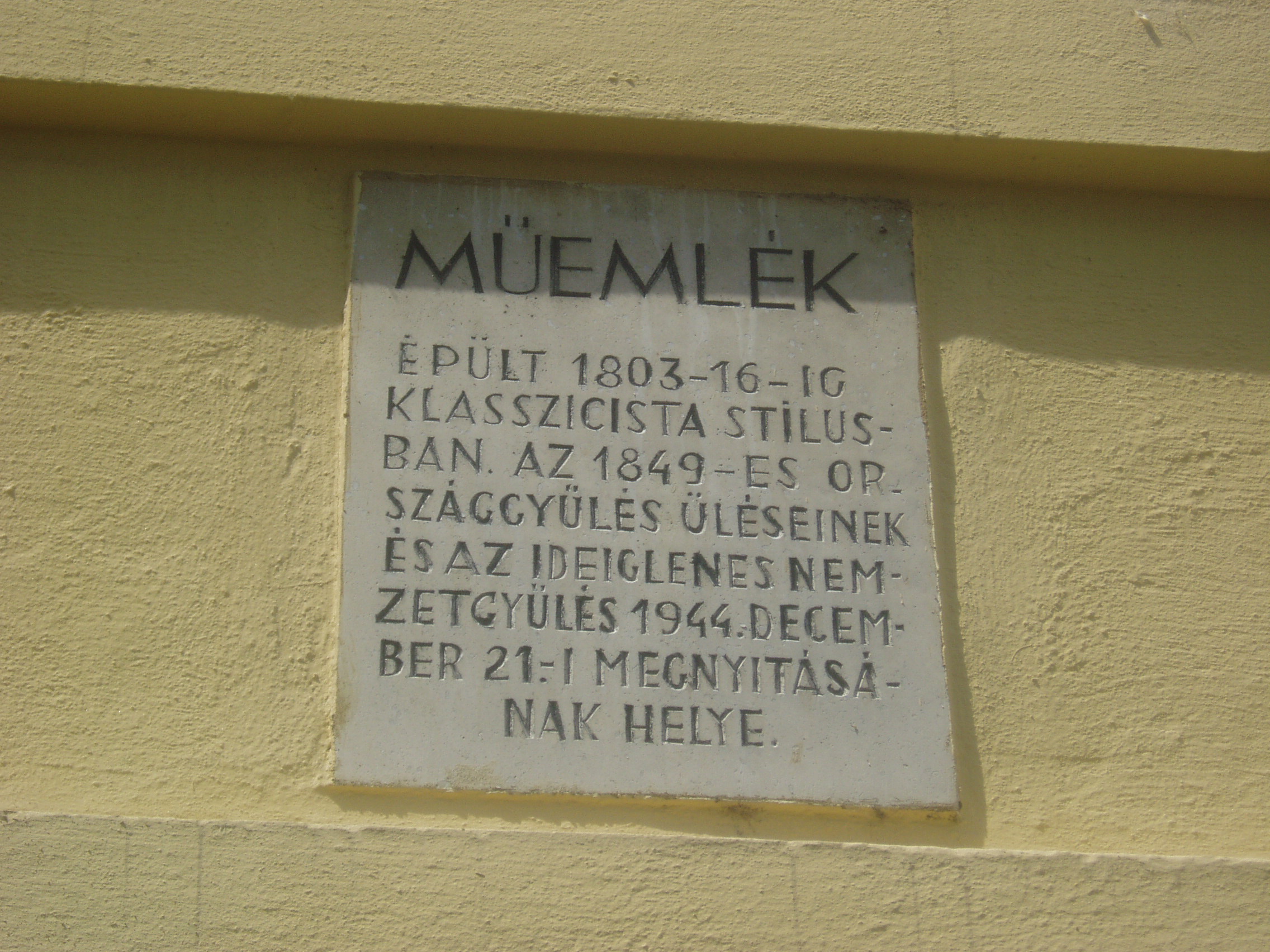 Nyilvános 1492 | 1960 | Debrecen, Széchenyi utca 1. | A Podmaniczky-ház Debrecen patinás épülete, a Piac utca és a Széchenyi utca sarkán áll. Nevét gróf Dégenfeld József, Hajdú vármegye és Debrecen főispánja feleségéről, Podmaniczky Annáról kapta. 1820-ban épült klasszicista stílusban. 1849-ben a szabadságharcos magyar kormány debreceni tartózkodásának idején e ház emeleti dísztermében tartotta üléseit az országgyűlés főrendi háza, amint arról az épületen emléktábla is tanúskodik. Az épületen elhelyezték az utcanévadó Széchenyi István emléktábláját is, aki többször is járt Debrecenben. Fiatal huszártisztként Simonyi óbester ezredében szolgált, 1840-ben pedig a Tisza szabályozásának ügyében tartózkodott a városban. Felh. irod.: Papp Antal: Debrecen. Bp. Panoráma, 1976 Kovács Gergelyné: Debrecen. Bp. Panoráma, 1981 www.debrecen.hu |