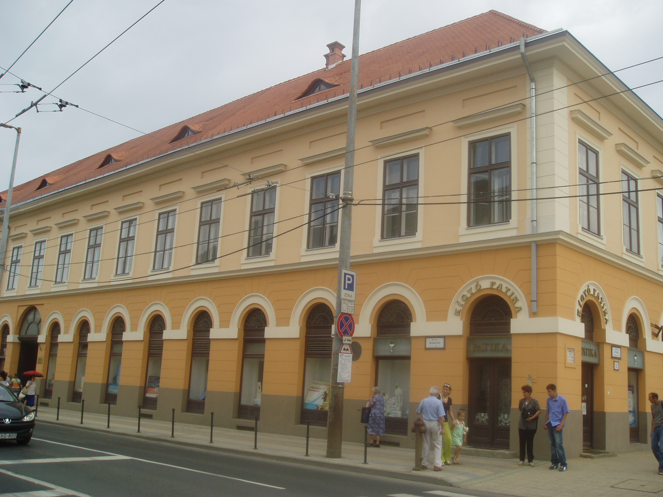 Nyilvános 1176 | 1937 | Debrecen, Széchenyi utca 1. | A Podmaniczky-ház Debrecen patinás épülete, a Piac utca és a Széchenyi utca sarkán áll. Nevét gróf Dégenfeld József, Hajdú vármegye és Debrecen főispánja feleségéről, Podmaniczky Annáról kapta. 1820-ban épült klasszicista stílusban. 1849-ben a szabadságharcos magyar kormány debreceni tartózkodásának idején e ház emeleti dísztermében tartotta üléseit az országgyűlés főrendi háza, amint arról az épületen emléktábla is tanúskodik. Az épületen elhelyezték az utcanévadó Széchenyi István emléktábláját is, aki többször is járt Debrecenben. Fiatal huszártisztként Simonyi óbester ezredében szolgált, 1840-ben pedig a Tisza szabályozásának ügyében tartózkodott a városban. Felh. irod.: Papp Antal: Debrecen. Bp. Panoráma, 1976 Kovács Gergelyné: Debrecen. Bp. Panoráma, 1981 www.debrecen.hu |