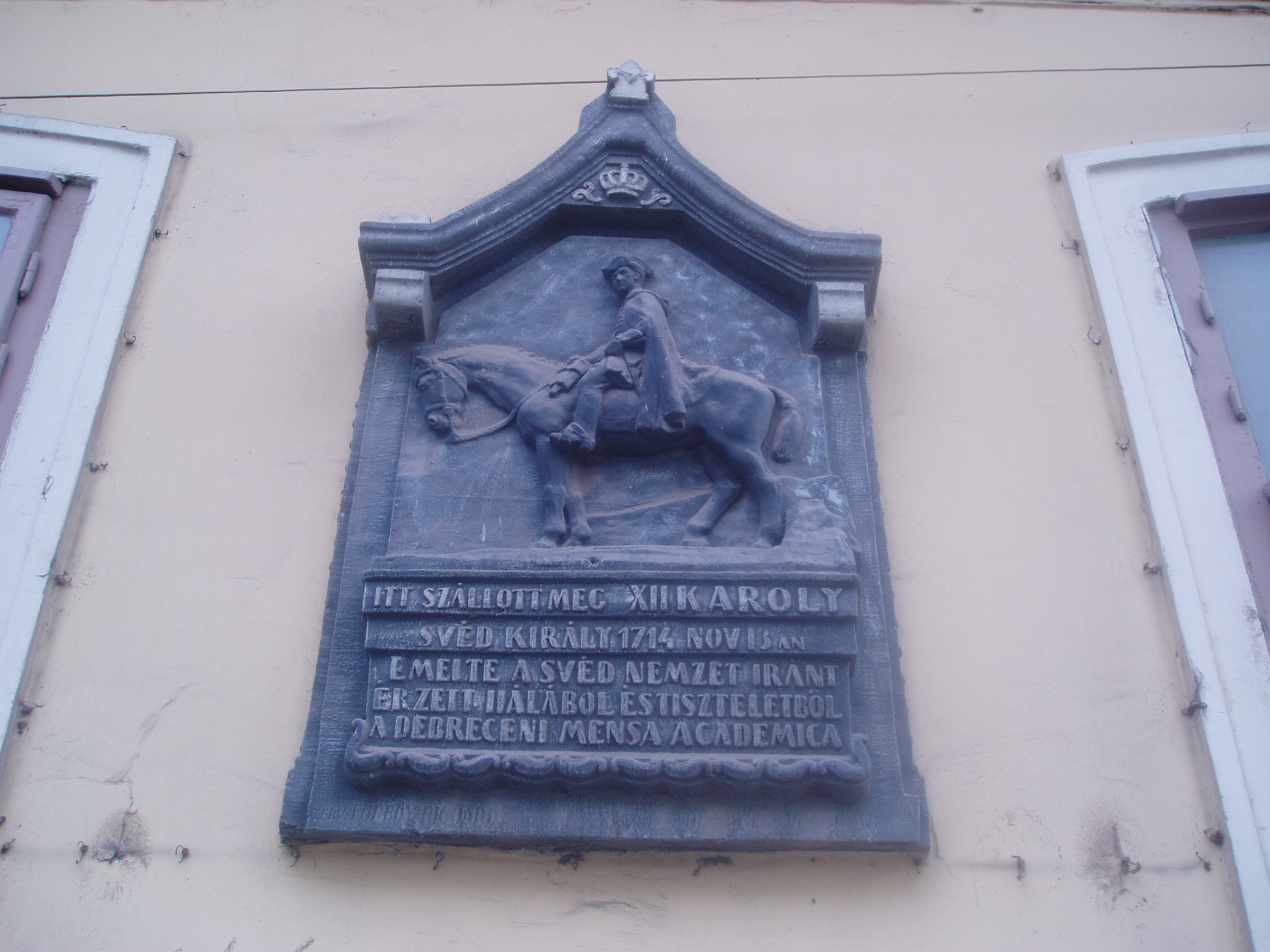 Nyilvános 1144 | 1598 | Debrecen, Széchenyi utca 6. | Debrecen legrégibb fennmaradt lakóháza az 1690-es években emelt patríciusház. A 17. század végén már Diószegi Sámuelé, a város főbírájáé, s első postamesteréé is volt. A ház így fogadóként is szolgált. Legnevezetesebb vendége XII. Károly svéd király volt, aki itt szállt meg 1714. november 16-án, amikor Törökországból hazafelé tartott az I. Péter orosz cártól elszenvedett vereség után. Az egykorú források megőrizték, hogy a király, aki nemcsak híres hadvezér és államférfi volt a maga korában, hanem felvilágosult gondolkodó is, igazi lelki gyönyörűséget talált a debreceni főbíró házánál, ahol a kollégium professzoraival, a nagy műveltségű, világot járt házigazdával és más olvasott férfiakkal találkozott. A továbbutazó király elégedetten jegyezte fel, hogy itt, a távoli magyar városban igen jól felszerelt és gazdag könyvtár állt rendelkezésére esti olvasás céljából. Felh. irod.: Papp Antal: Debrecen. Bp. Panoráma, 1976 www.debrecen.hu |
