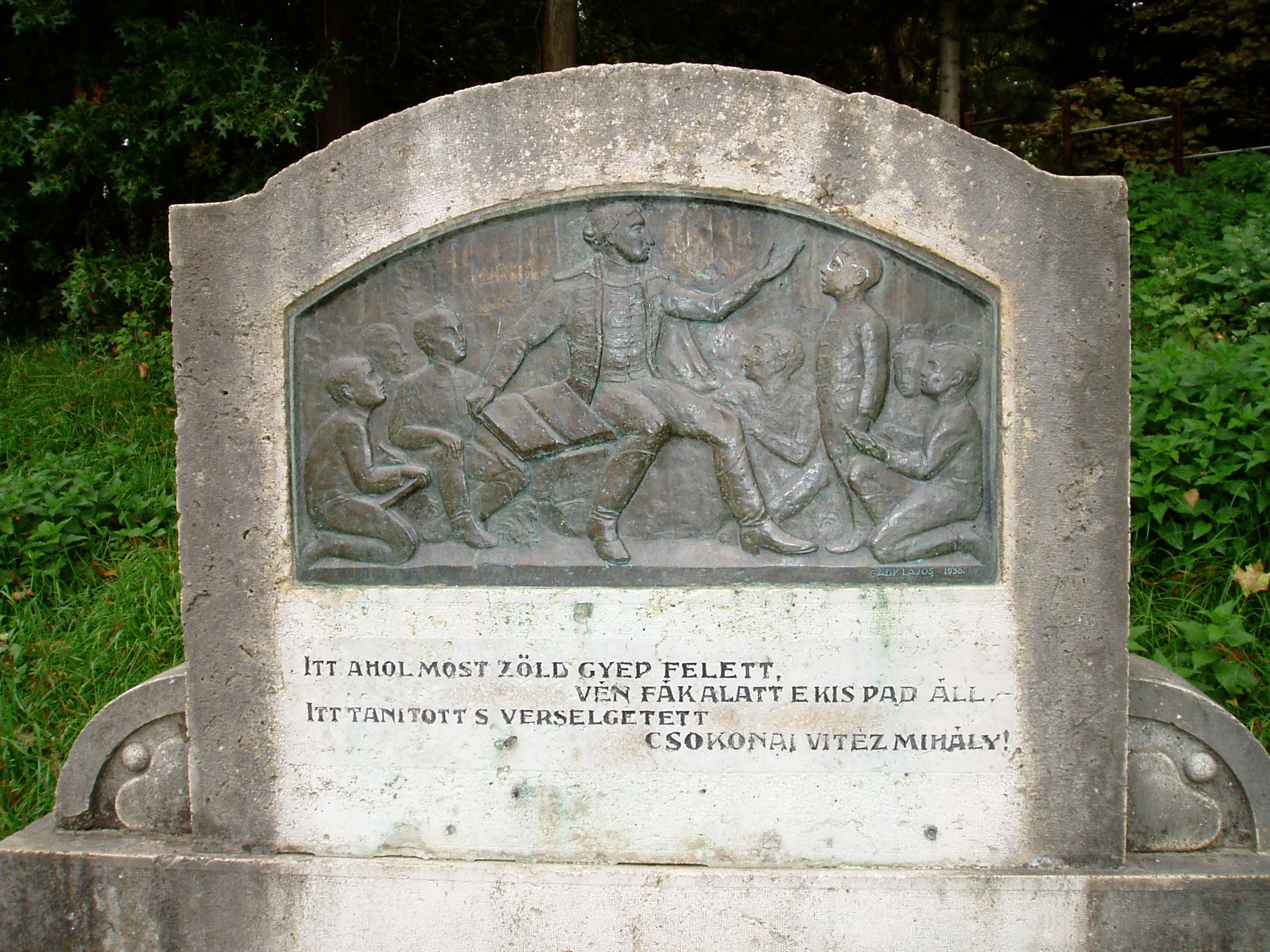 Nyilvános 1254 | 2824 | Csurgó, Széchenyi tér 9. | A Csokonai Vitéz Mihály Református Gimnázium és Általános Iskola mai épülete az egykori vadasparkban áll. A nagy kiterjedésű, 4 hektárnyi parkban nyolcvan féle, ritkaságszámba menő növényfaj él. A látogatót együttesen ragadja meg a patinás iskola látványa, a hatalmas ősfák közötti sétányok hangulata és a neves egyéniségek tiszteletére állított emlékek együttese. A park távolabbi részén, a gimnázium háta mögött állították fel 1936-ban Csokonai Vitéz Mihály emlékpadját. A költő 1799 őszétől 1800 májusáig működött segédtanárként a csurgói gimnáziumban. Bár szeretett volna állandó alkalmaztatást, hogy Lilláját feleségül vehesse, még Sárközy István és Festetics György támogatásával is csak egy helyettesítő tanári állást kapott arra az időre, amíg a posztra kiszemelt tanár hazaérkezik külföldről, befejezve kinti egyetemi tanulmányait. Korabeli visszaemlékezésekből kirajzolódik előttünk a tanár Csokonai alakja. Csokonai az akkori gyakorlathoz képest teljesen rendhagyó módon tanított. Előadásai olyan érdekfeszítőek voltak, személyiségének kisugárzása olyan erős volt, hogy az akkoriban szokásos fegyelmezési eszközökhöz soha nem kellett folyamodnia. Óráit gyakran a szabadban tartotta, ahol természetes emberi közvetlenséggel beszélgetett diákjaival. S hogy ez a kedvenc helye hol volt, azt diákok és tanárok emlékezete őrizte nemzedékről nemzedékre. Itt, a park egy rejtett dombhajlatában állították fel 1936-ban a költő emlékpadját. A kőbe vésett versikét Écsy Ödön István, a gimnázium akkori tanára írta. Felh. irod.: Horváth József: Csurgó. Műemlékek. Bp. Tájak, Korok, Múzeumok Kiskönyvtára 441. 1982 Csurgói kalauz. Szerk. Terényi Zoltán. 1974 Látnivalók Somogy megyében. Miskolc, Well-PRess Kiadó, 2000 www.vendegvaro.hu |