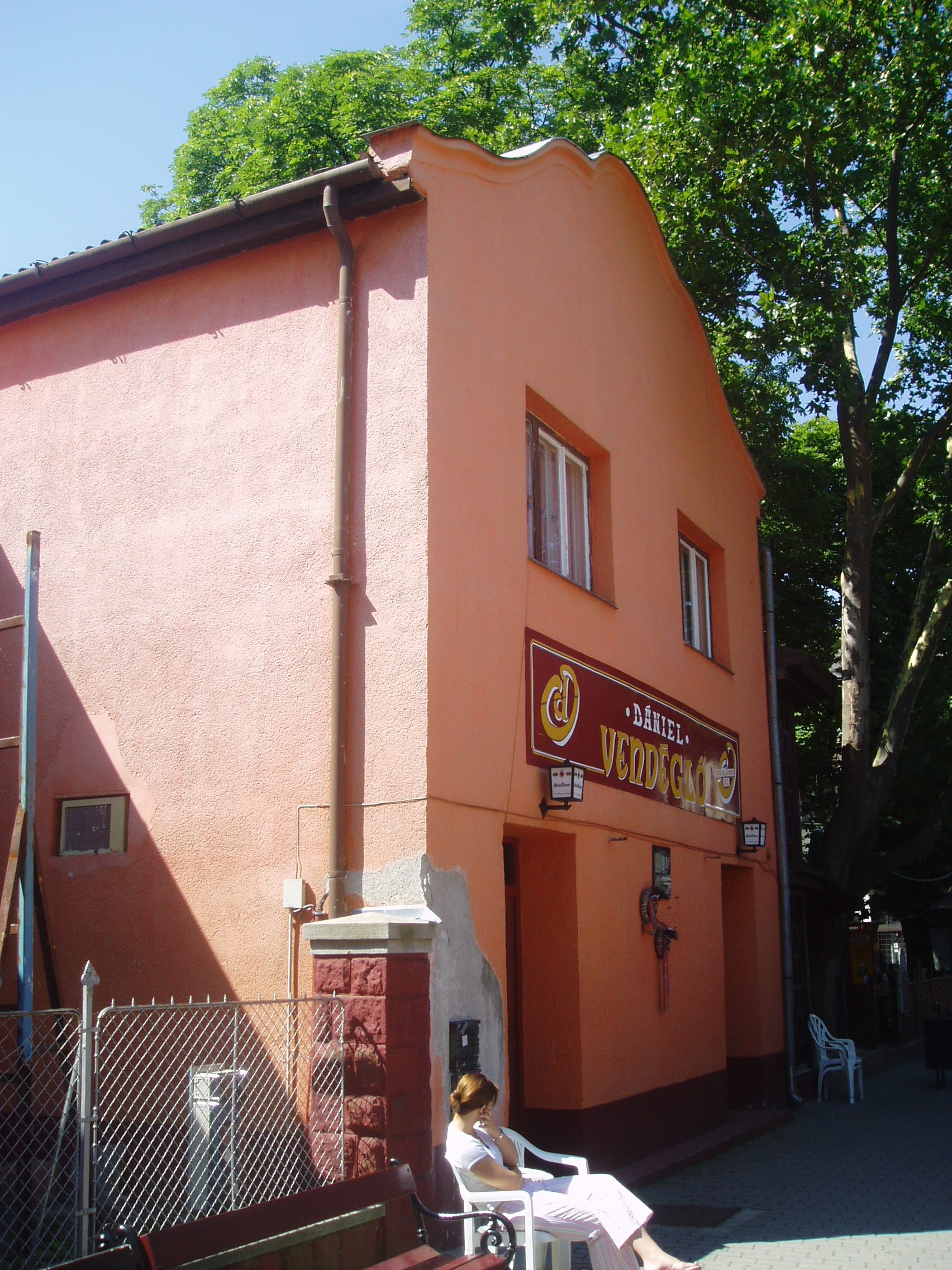Nyilvános 1226 | 2469 | Siófok, Kálmán Imre sétány 3. | A város szívében, a sétálóutca központi részén található az egykori Kovács cukrászda, amely ma Siófok egyik legkellemesebb hangulatú étterme. Homlokzatán Feleki Kamillra, az operett műfajának kimagasló egyéniségére emlékező fekete márványtábla fogadja a sétálót, aki gyermekkorában ebben a házban töltötte nyarait testvéreivel együtt. A házban apai nagyszülei vezették az akkori vendéglőt. A fénykép 2006 júliusában készült. Felh. irod.: Matyikó Sebestyén József: Feleki Kamill és Siófok. = Siófoki Hírek 2003. júl. 23. |
