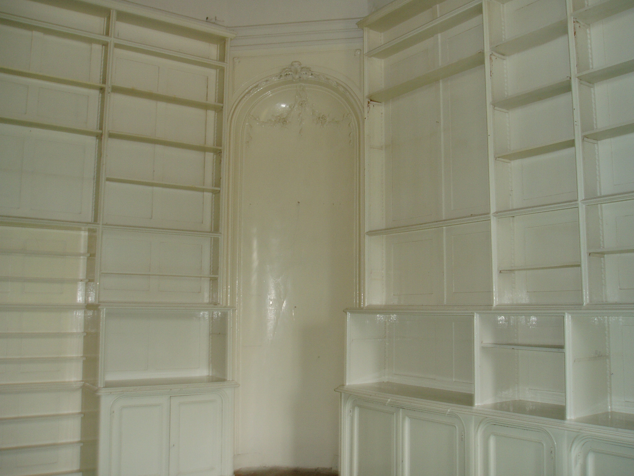 Nyilvános 1536 | 3150 | Tata, Kastély tér: Esterházy-kastély | Az Esterházy–kastély műemléki együttese az Öreg–tó partján, a középkori vár közvetlen szomszédságában áll. Fellner Jakab tervei szerint a XVIII. század második felében épült az Esterházy–család fraknói ága számára, későbarokk stílusban, a kiváló építész egyik legjelentősebb műveként. Fellner a hazai késő barokk, illetve korai klasszicizmus egyik legjelentősebb építésze, munkássága a mai napig meghatározza Tata városképét. Az épület több alkalommal is jelentős szerepet játszott a történelemben. 1809-ben I. Ferenc osztrák császár és felesége, Ludovika ide menekültek Napóleon hadai elől. Hosszú hetekig itt laktak, s az uralkodó itt, az északi szárny toronyszobájában írta alá az ún. Schönbrunni békét. 1897-ben Ferenc József és II. Vilmos német császár látogattak ide egy tatai hadgyakorlat alkalmából. 1921-ben az utolsó magyar király, IV. Károly menekült ide feleségével a balul végződött budaörsi csata után, s itt vették őket őrizetbe. A kastély eredeti berendezését sajnos széthordták, de épségben megmaradtak korabeli belsőépítészeti szerkezetei: kosáríves záródású ablakai, festett ajtói, díszes spalettái, stukkói és festett mennyezetei. A képen az egykori könyvtár (azóta sajnos fehérre mázolt) eredeti bútorzata látható. Sajnos a könyvek is a történelem viharainak áldozatai lettek. A fénykép 2005. júliusában készült. Felh. irod.: Polgárdy Géza: Tatatóváros és környéke kalauza. Az 1939-es kiadás reprintje. Tata, Móricz Zsigmond Városi Könyvtár, 1998 Magyar kastélylexikon 4. Komárom-Esztergom megye kastélyai és kúriái. Bp. Perfect Project, 2003 |