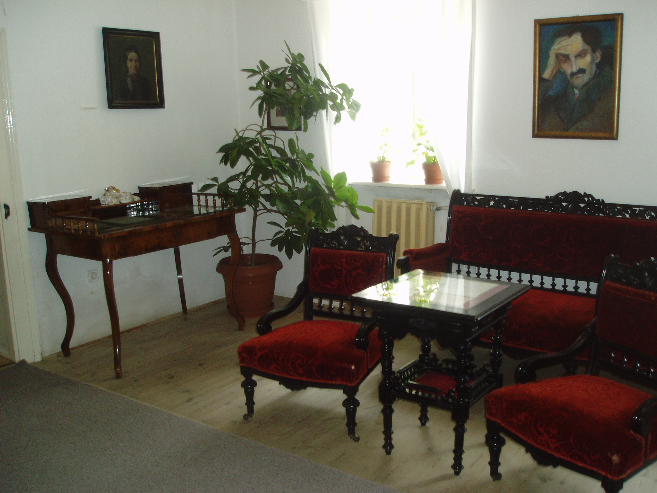 Nyilvános 1574 | 3601 | Szekszárd, Babits Mihály utca 13. Babits Mihály Emlékház | Babits Mihály egyemeletes, copf stílusú szülőháza a XIX. század elején (egyes források szerint 1780 körül) épült az akkor a város védőszentjéről Szt. Lászlónak nevezett utcában. A költő anyai nagyapja 1852-ben, szekszárdi letelepedésekor vásárolta meg. Itt született a költő 1883. november 26-án, s sokat tartózkodott és alkotott ezen a helyen. 1967-ben rendezték meg a házban az első emlékkiállítást, amelyet 1983-ban, a költő születésének centenáriumán újjáalakítottak, s az egész épületet emlékháznak rendezték be. A költő relikviái, a család bútorai, használati tárgyai és dokumentumai mellett láthatók Farkas Pál, Rippl-Rónai József, Glatz Oszkár és Beck Ö. Fülöp Babitsot ábrázoló képzőművészeti alkotásai is. Babits Mihály számos verse itt született, és itt játszódik a Halálfiai című regény több fejezete is. Az épület udvarán 1981-ben avatták fel Babits Mihály szobrát, Farkas Pál alkotását. Babits szülőházában állandó kiállítás idézi a szintén szekszárdi születésű Dienes Valéria filozófus és Baka István költő, író emlékét. A fénykép 2006 júliusában készült. Felh. irod.: www.szekszard.hu www.museum.hu Töttős Gábor: Babits bölcsői körül. = Tolna Megyei Levéltári Füzetek 6. Szekszárd, 1977 |