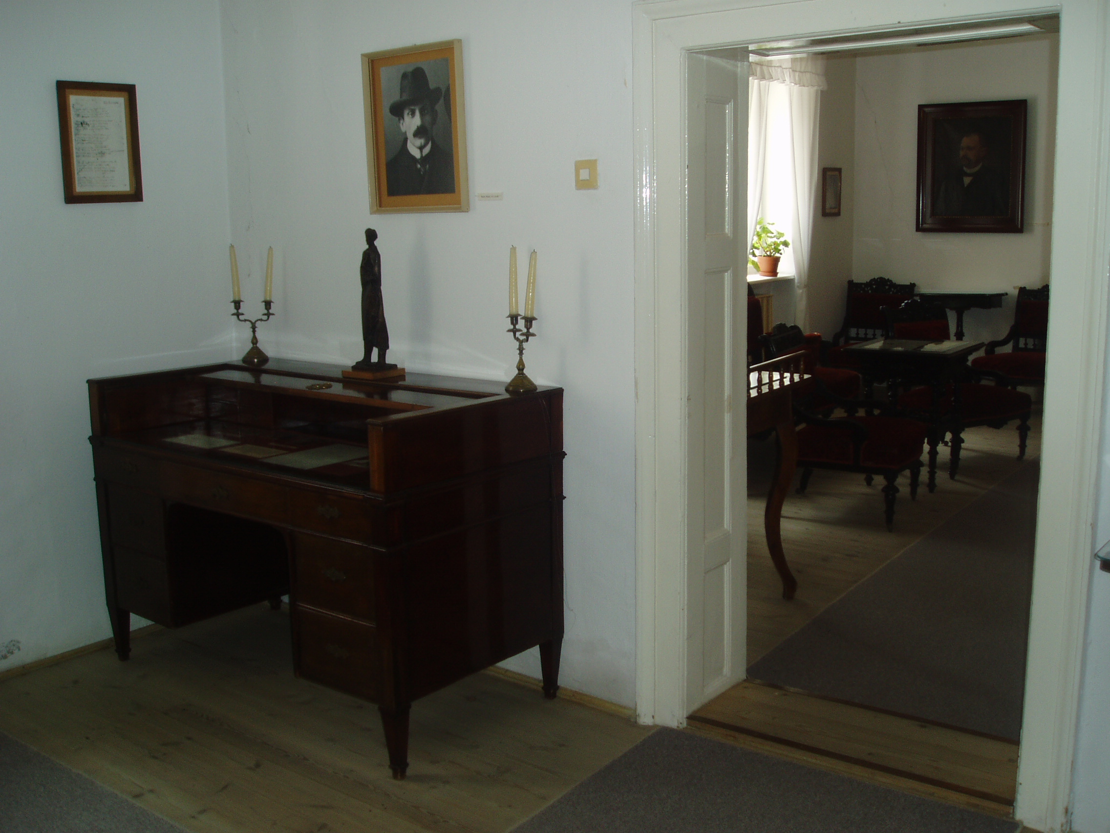 Nyilvános 1567 | 3512 | Szekszárd, Babits Mihály utca 13. Babits Mihály Emlékház | Babits Mihály egyemeletes, copf stílusú szülőháza a XIX. század elején (egyes források szerint 1780 körül) épült az akkor a város védőszentjéről Szt. Lászlónak nevezett utcában. A költő anyai nagyapja 1852-ben, szekszárdi letelepedésekor vásárolta meg. Itt született a költő 1883. november 26-án, s sokat tartózkodott és alkotott ezen a helyen. 1967-ben rendezték meg a házban az első emlékkiállítást, amelyet 1983-ban, a költő születésének centenáriumán újjáalakítottak, s az egész épületet emlékháznak rendezték be. A költő relikviái, a család bútorai, használati tárgyai és dokumentumai mellett láthatók Farkas Pál, Rippl-Rónai József, Glatz Oszkár és Beck Ö. Fülöp Babitsot ábrázoló képzőművészeti alkotásai is. Babits Mihály számos verse itt született, és itt játszódik a Halálfiai című regény több fejezete is. Az épület udvarán 1981-ben avatták fel Babits Mihály szobrát, Farkas Pál alkotását. Babits szülőházában állandó kiállítás idézi a szintén szekszárdi születésű Dienes Valéria filozófus és Baka István költő, író emlékét. A fénykép 2006 júliusában készült. Felh. irod.: www.szekszard.hu www.museum.hu Töttős Gábor: Babits bölcsői körül. = Tolna Megyei Levéltári Füzetek 6. Szekszárd, 1977 |