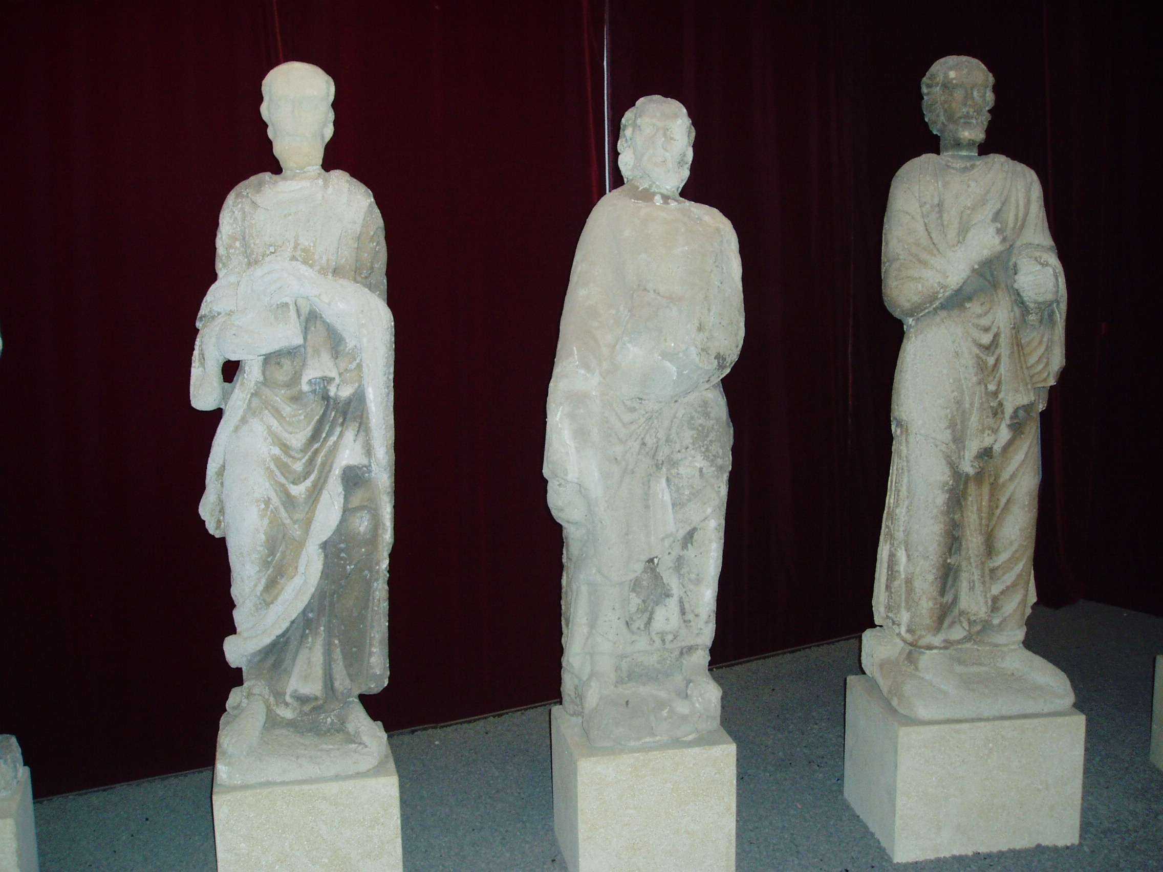Nyilvános 1092 | 1782 | Szombathely, Kisfaludy utca 9. Savaria Múzeum | Az érdeklődő a Savaria Múzeum nagytermében tekintheti meg a jáki templom (lásd: Ják, Templom) eredeti homlokzati szobrait, amelyek Krisztust és a tizenkét apostolt ábrázolják. Az életnagyságú szobrok a magyarországi későromán szobrászat kiemelkedő alkotásai. Eredetileg a templom kapuépítményének homlokzatát díszítették, lépcsőzetesen elhelyezve, oszlopokkal elválasztott, karéjos záródású fülkékben állva. Jákon jelenleg pontos másolataik láthatók. Kicserélésük oka a nagyértékű szobroknak az időjárás viszontagságaitól való megvédése volt. A jáki apátsági templom, az egykori jáki bencés apátság monumentális bazilikája a magyarországi román stílusú építészet kiemelkedő, szinte szimbolikus alkotása. A hazai középkori nemzetségi monostorok egyedülálló épségben fennmaradt képviselője, mely művészi gazdagságával, a táj képébe illeszkedő mesteri elhelyezésével hívja fel magára a figyelmet. A fénykép 2006 májusában készült. |