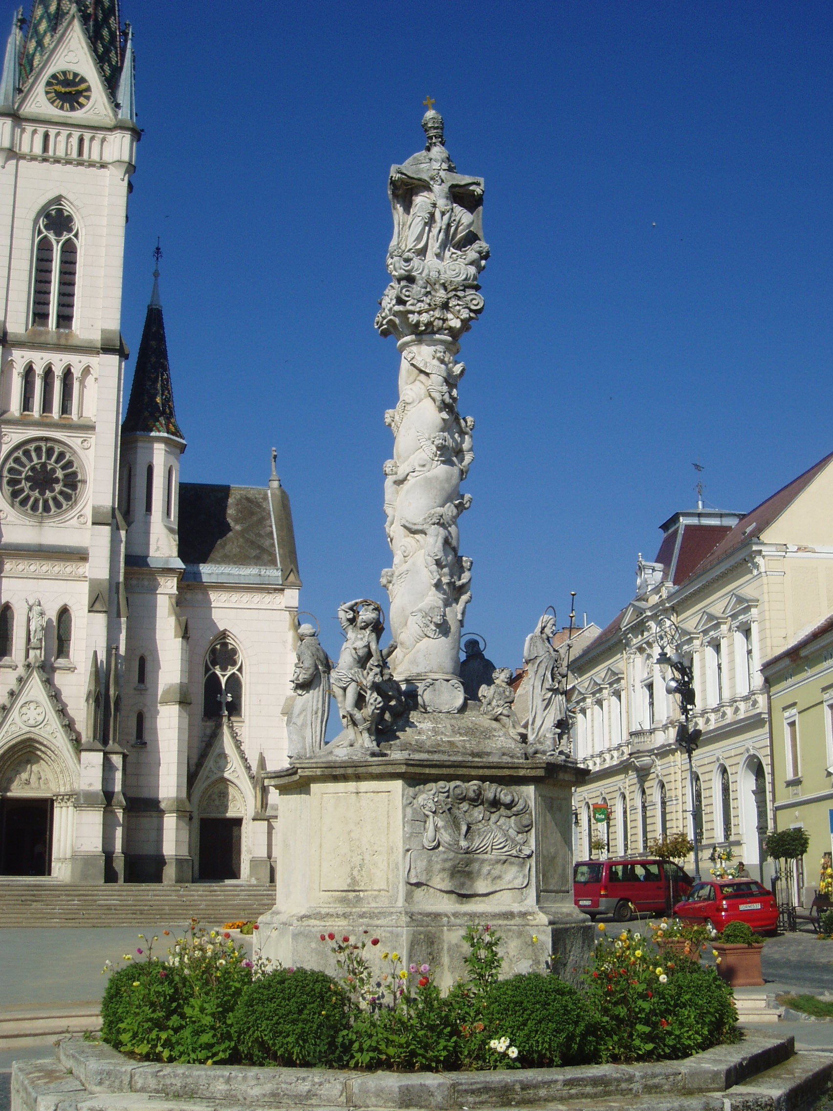 Kőszeg, Fő tér: Jézus Szíve-templom előtt