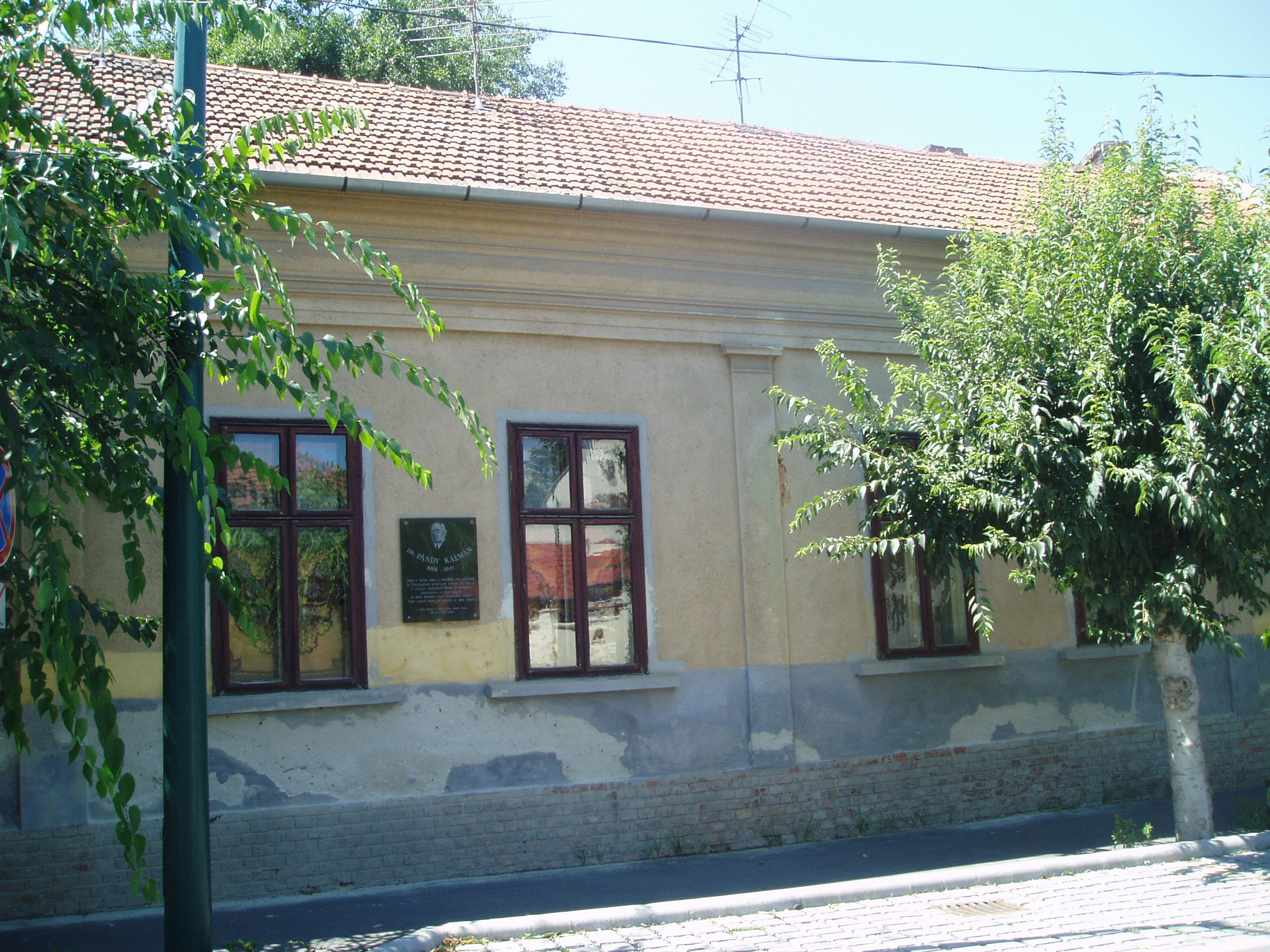 Nyilvános 1079 | 1562 | Gyula, Munkácsy utca 5. | Mint az épületen elhelyezett emléktáblán is olvasható, 1899 és 1905 között ebben a házban élt Pándy Kálmán (1868-1945), a nemzetközi hírű pszichiáter. A fénykép 2007 júliusában készült. |