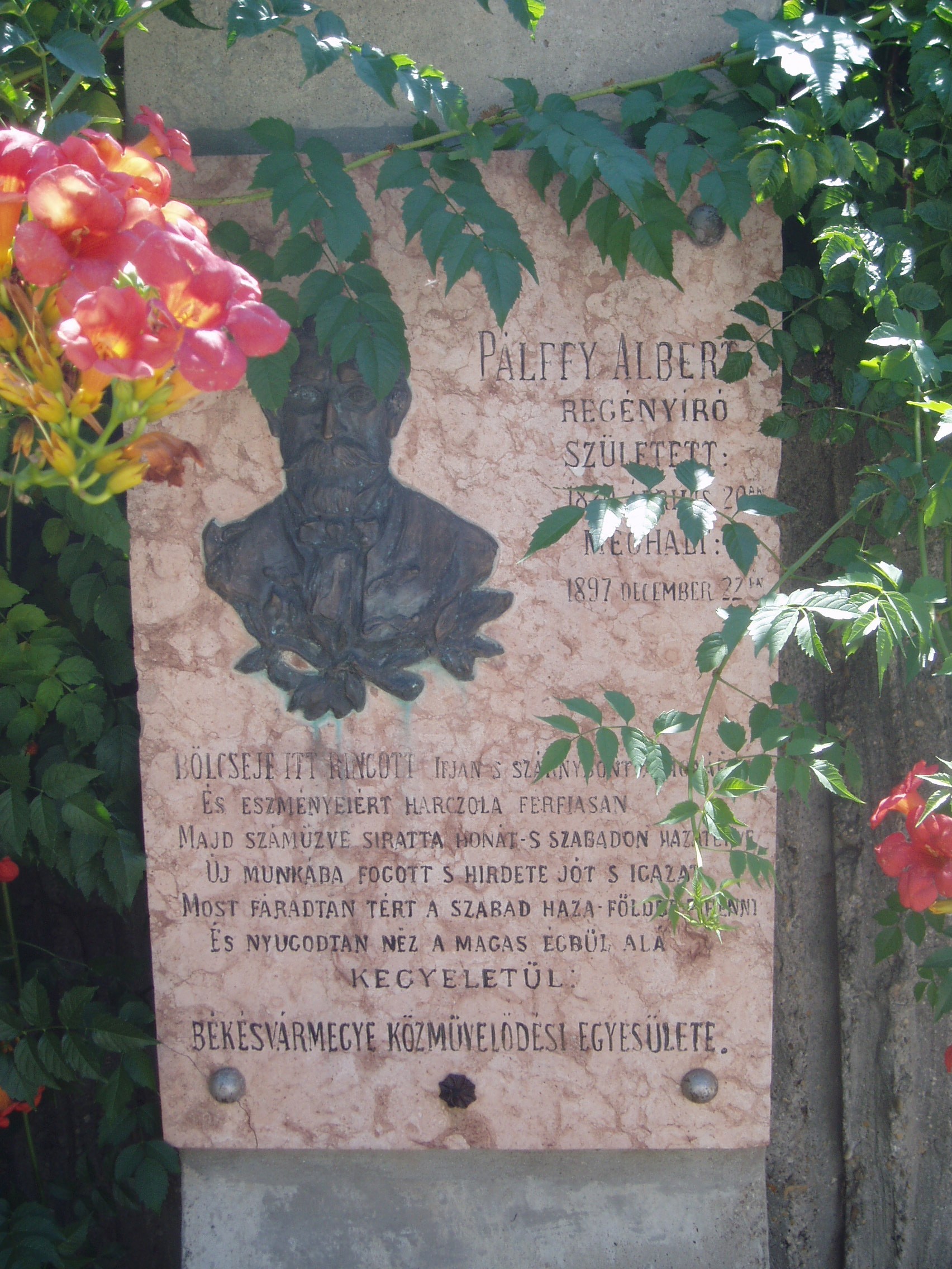 Nyilvános 1028 | 1571 | Gyula, Pálffy Albert utca 3. | Itt állt egykor Pálffy Albert (1820-1897) író szülőháza. Pálffy az 1840-es években Petőfi baráti köréhez tartozott, tagja volt a Tizek Társaságának. Ő szerkesztette 1848/49-ben a Március Tizenötödike című radikális lapot, melynek mottója ez volt: "Nem kell táblabíró politika". Radikalizmusáért 1849 júliusában a lapot betiltották. Pálffy a szabadságharc bukása után itthon bujdosott, s elfogták, kétévi börtönre ítélték. Kiszabadulása után folytatta az újságírást, több lapnál dolgozott. Az 1880-as években barátja, Gyulai Pál buzdítására visszatért a regényíráshoz. Egyike volt a magyar újságírói stílus megteremtőinek. A Magyar Tudományos Akadémia tagjává választotta. Szülőházát 1899-ben emléktáblával jelölték meg. A bronz dombormű Kallós Ede munkája, feliratát Szász Károly írta, s leleplezésekor Gyulai Pál mondott beszédet. A városrendezés során a klasszicista stílusú szülőházat lebontották, az emléktáblát eredeti helyén talapzatra helyezték. A fénykép 2007 júliusában készült. Felh. irod.: Czeglédi Imre: Gyula útikalauz. 2. jav., bőv. kiad. Gyula, 1995 |