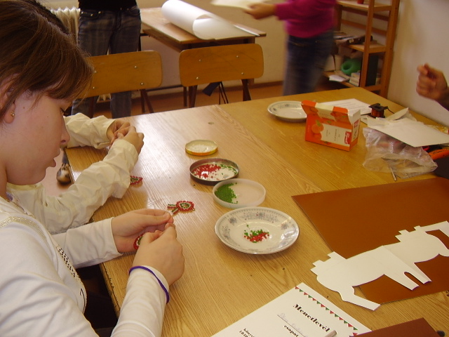 Gyöngyből fűzünk kokárdát.