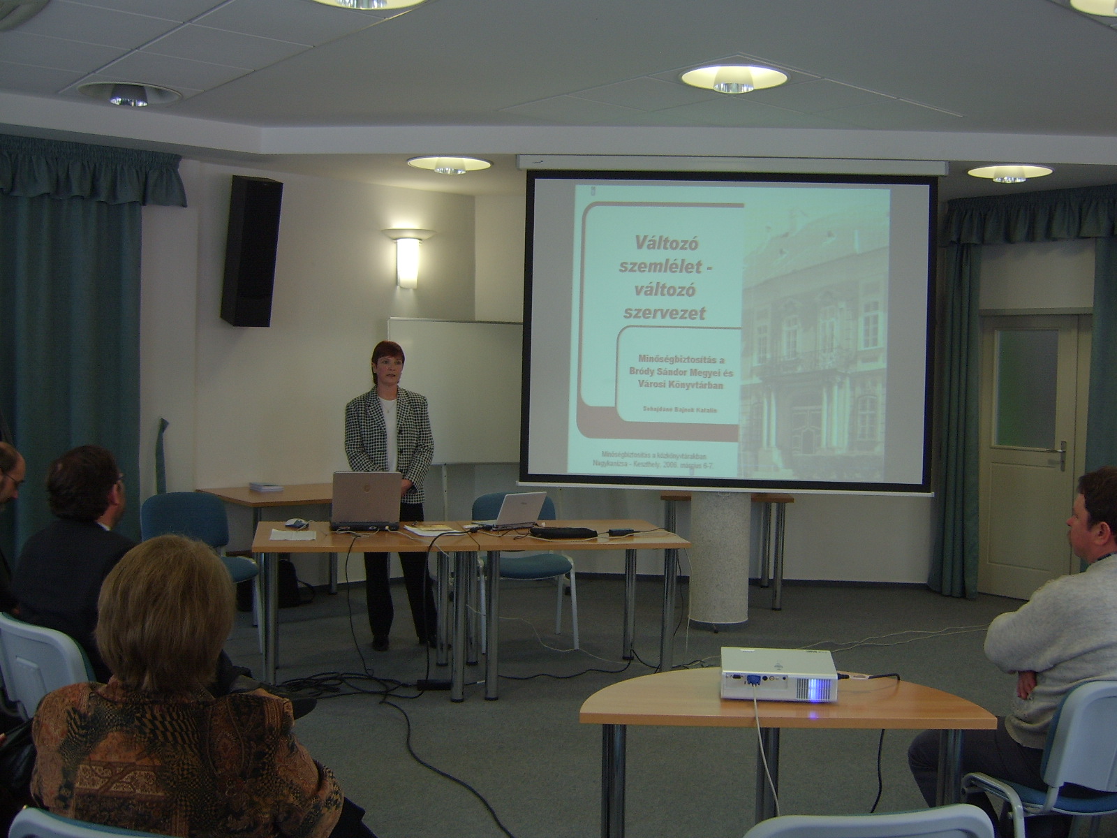 Nyilvános 1966 | 5763 | 2006. március 06. 10:00 - 13:00 Minőségbiztosítás a közkönyvtárakban - szakmai konferencia - képek | Sohajdáné Bajnok Katalin igazgatóhelyettes ( Bródy Sándor Megyei és Városi Könyvtár, Eger) előadása: Minőségbiztosítás a Bródy Sándor Megyei és Városi Könyvtárban A konferenciáról bővebben az eseménynaptárban olvashatnak, a következő link alatt: http://www.nagykar.hu/esemenynaptar/1/346.html |